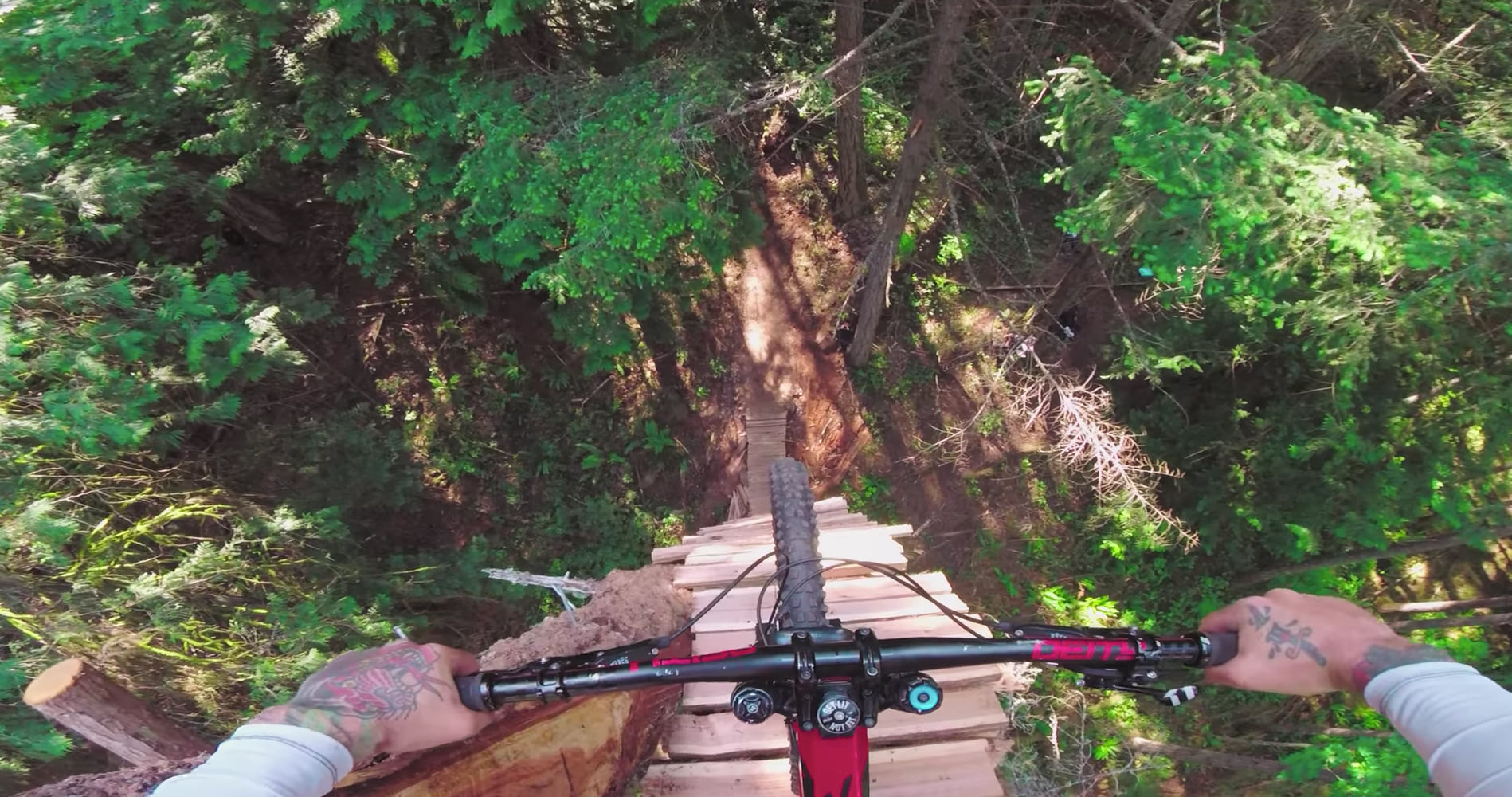 There’s a moment on that ladder drop where he gets very, very close to the left hand edge. Not that it is particularly wide at all. But he gets very, very close. I didn’t notice it the first time I watched it. I just noticed it this time. It didn’t make me feel comfortable. He’s undoubtedly a talented rider, but that surely is just a game over kind of crash. Bleeding testicles being a massive positive is a bizarre thing to witness!
