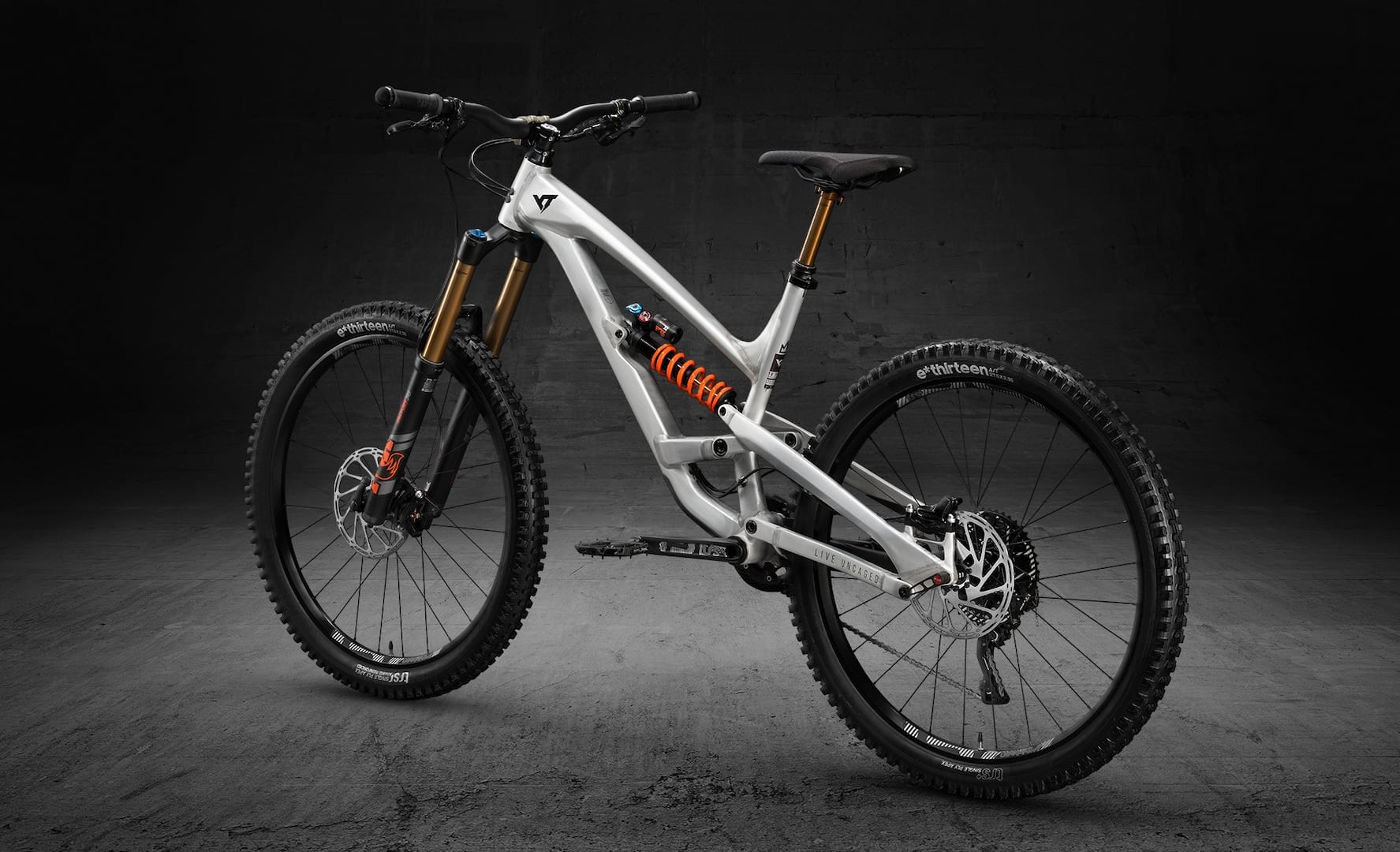 YT has an interesting approach to drivetrains, using a mix of Shimano and E*Thirteen components to produce an 11-speed drivetrain with a 511% gear range. For this limited edition bike an XTR Shadow Plus rear derailleur is the highlight and should ensure crisp shifting in all weather. SRAM’s Guide RSC 4 Pot brakes bring this long-travel bruiser to a halt.