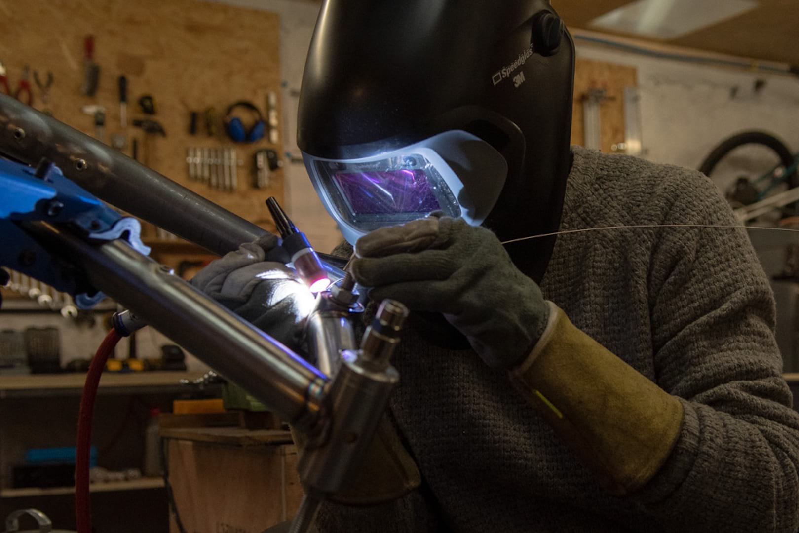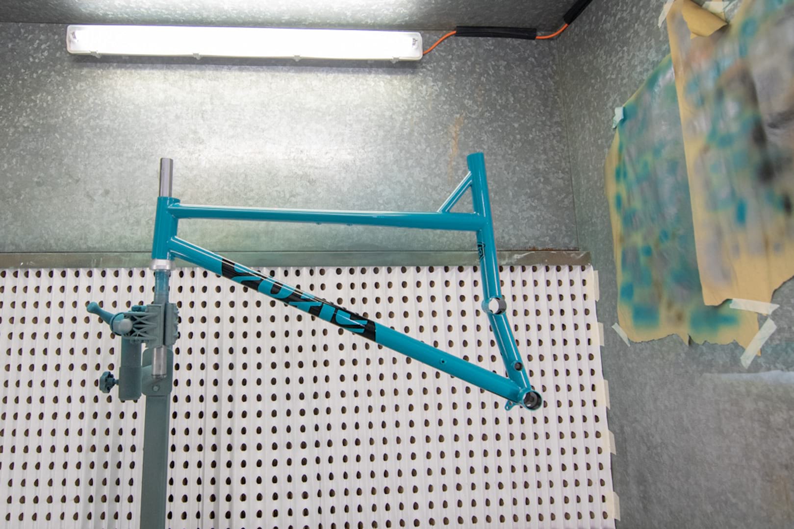 Of course, with two people doing everything from cutting, inspecting, welding, prepping and painting (they also paint the raw aluminium swingarms that come in from Taiwan) you can’t just knock up 200 frames in a week – but even so, the workflow is pretty impressive. Matt again: “You have to get a rhythm. Roughly a bike a day painted and a bike a day built, so we build in batches of fives. We usually make around 20 bikes a month for Cotic which leaves a bit of room for stuff for other people.” And indeed, they’ve also taken on commissions from smaller manufacturers too.