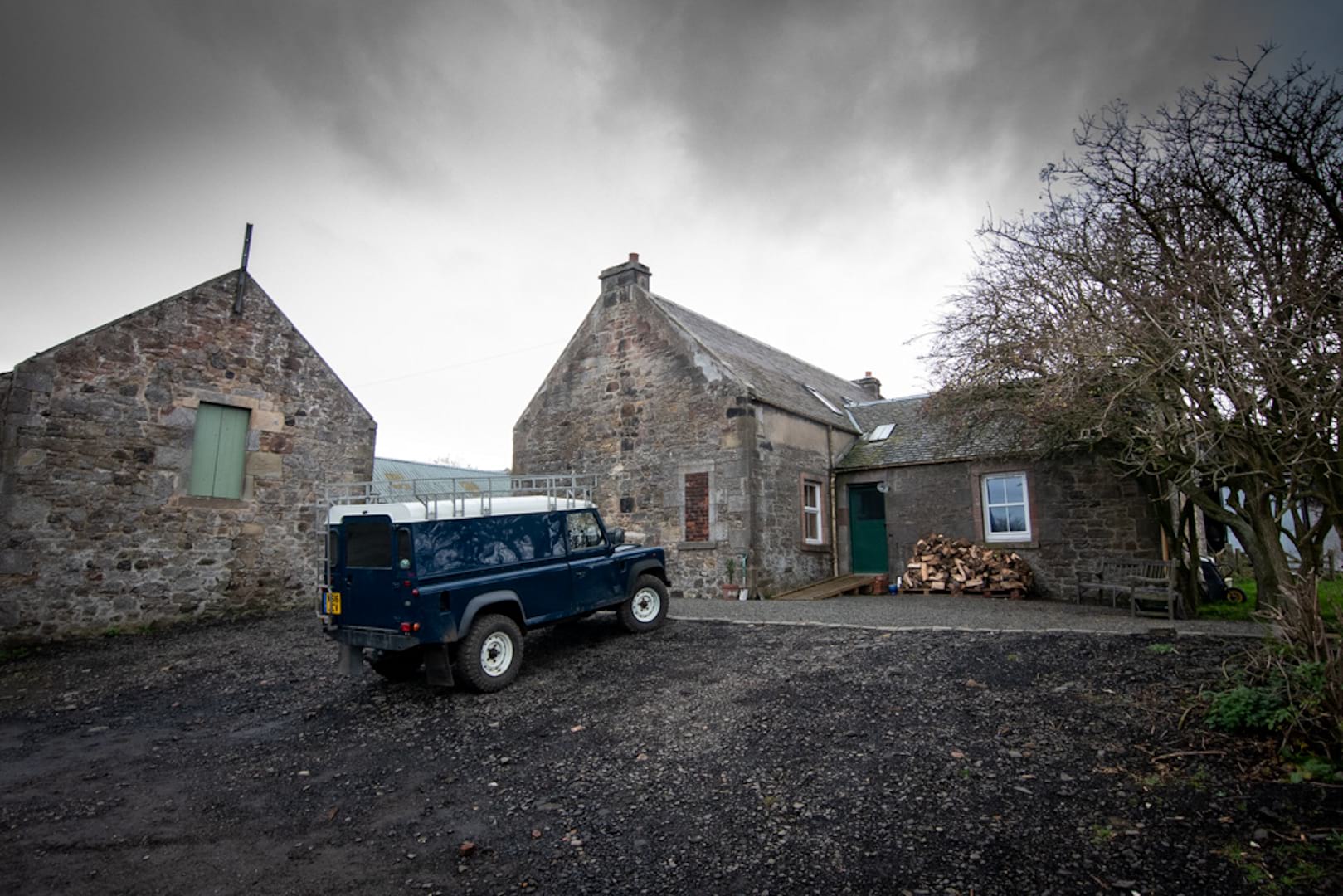 And here we are, Cy and I, pulling up after a very, very (very) long drive to a remote-seeming farmhouse which is, however, only 20 minutes drive to the centre of Edinburgh. But having left the motorway in the middle of nowhere, and driven for hours across more wind-swept, sparsely populated middle of nowhere, we clearly came the more desolate way in.