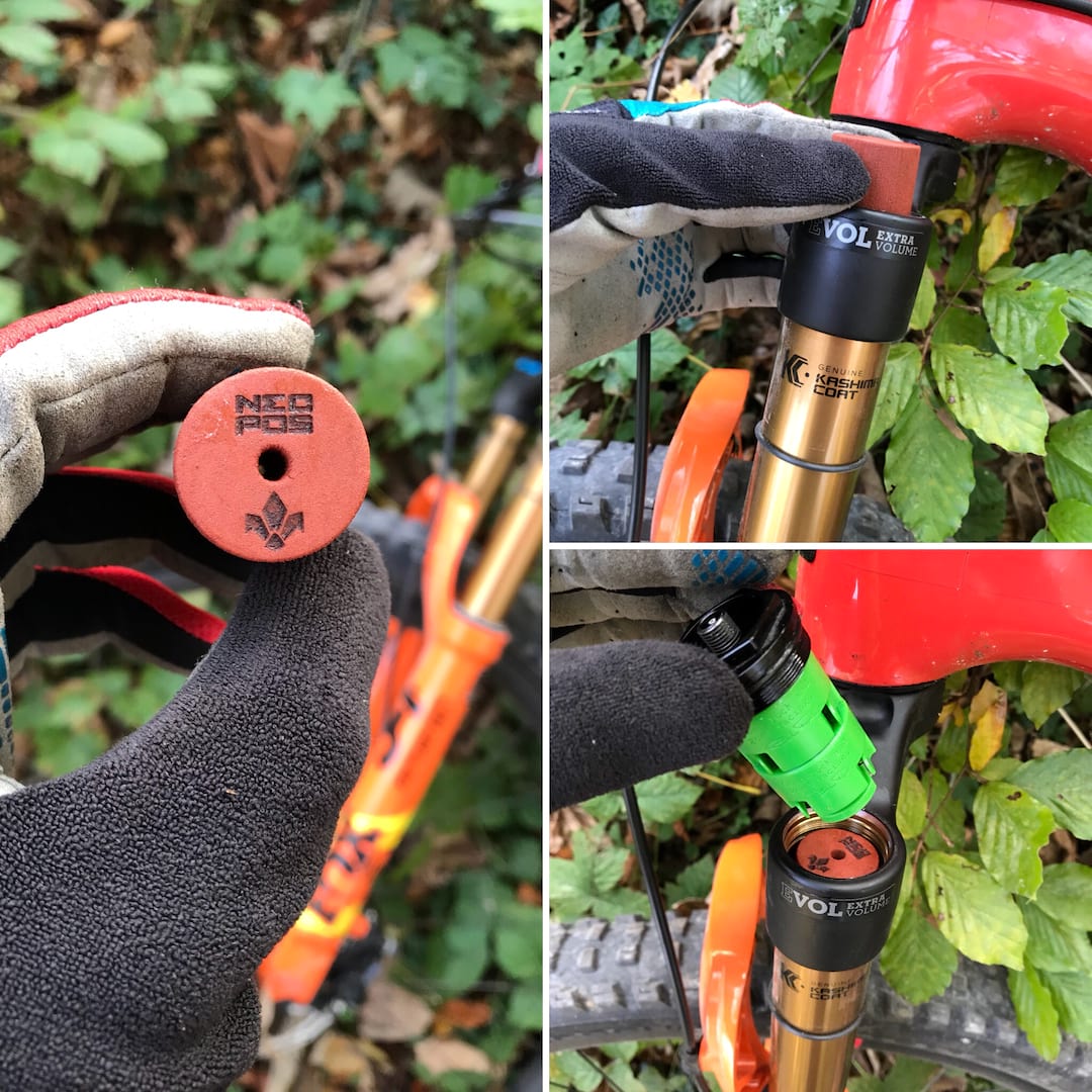 Just like a regular volume spacer, Neopos is designed to take up volume inside the air spring. You can use up to three of them, and the more you use the less air volume you have, and the more progressive your fork will feel. So far, so normal.