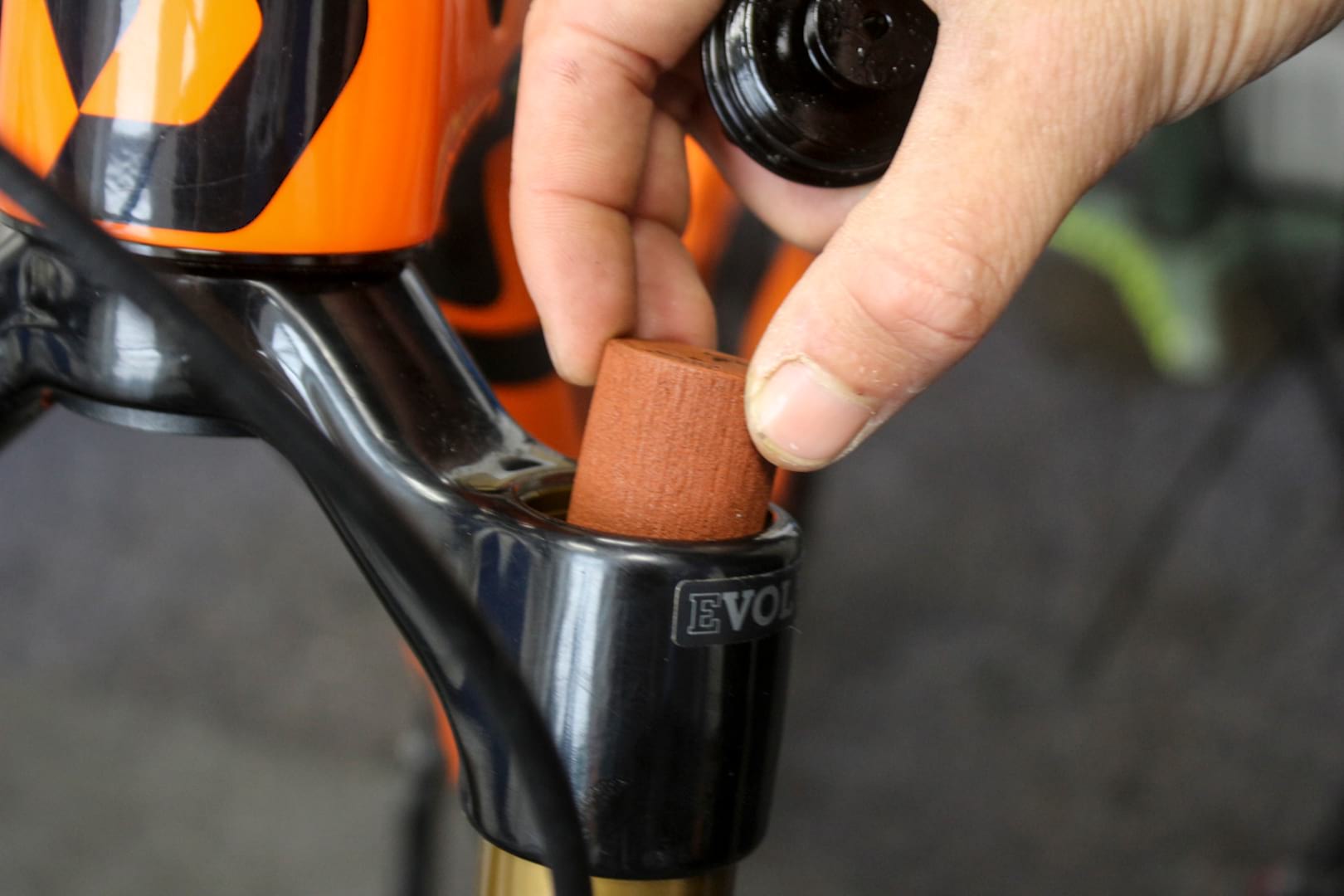 Fitting the Neopos spacer is as easy as it gets. After depressurising the air spring, you simply unthread the top cap and plop the Neopos spacer directly inside the air chamber. You don’t need to thread it into the top cap like you would with a normal plastic volume spacer, and it doesn’t attach to anything inside the fork. Although if floats around in there, it’s so light and soft that there is zero chance of you noticing it.