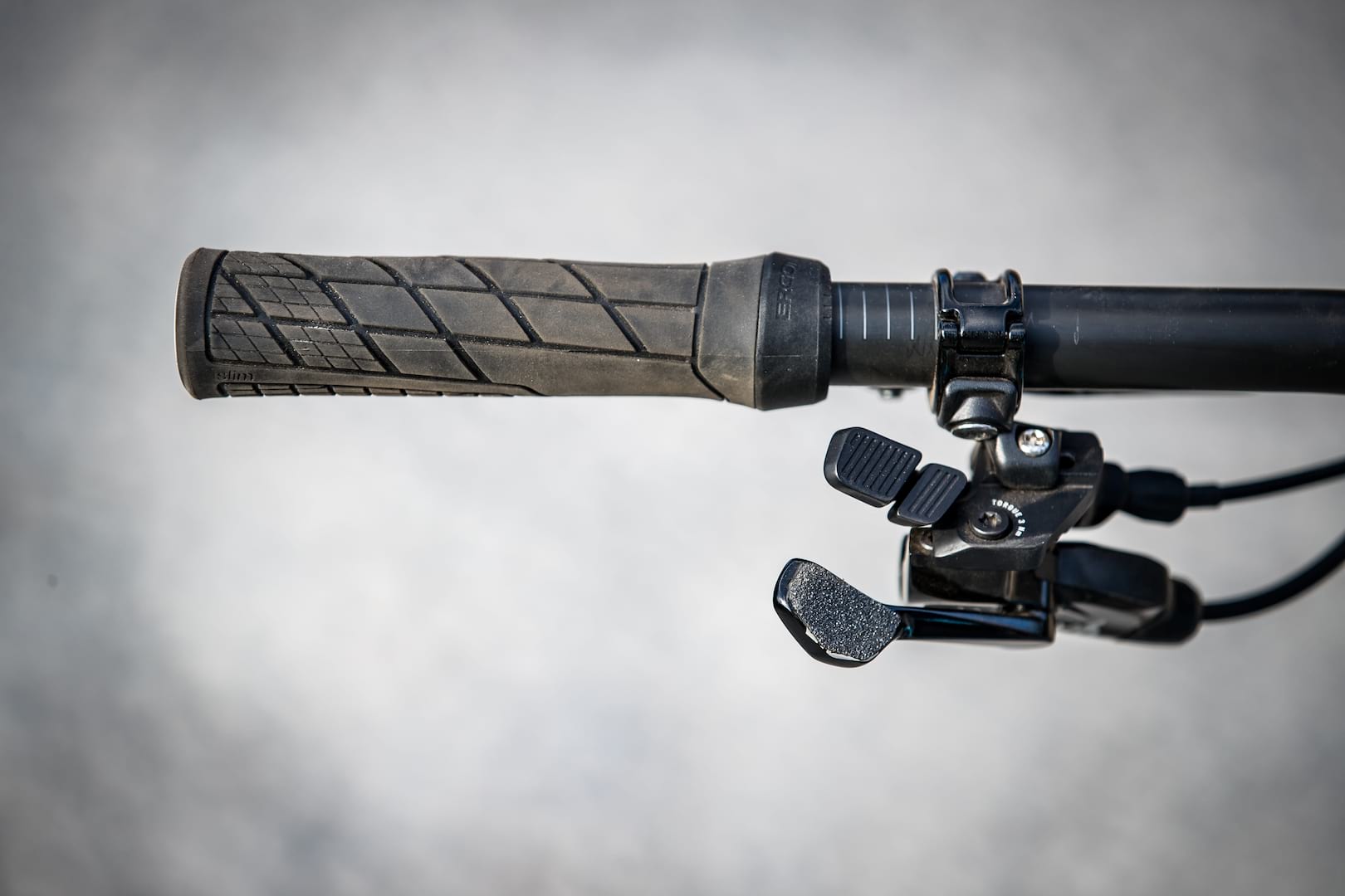 This means that you end up with a lever that looks like a larger front derailleur shifter, only with a 3rd dropper lever underneath. It’s easily the neatest solution we have seen by far, and we hope other manufacturers take note. *ahem* Scott, we’re looking at you.
