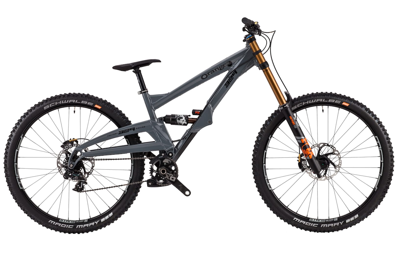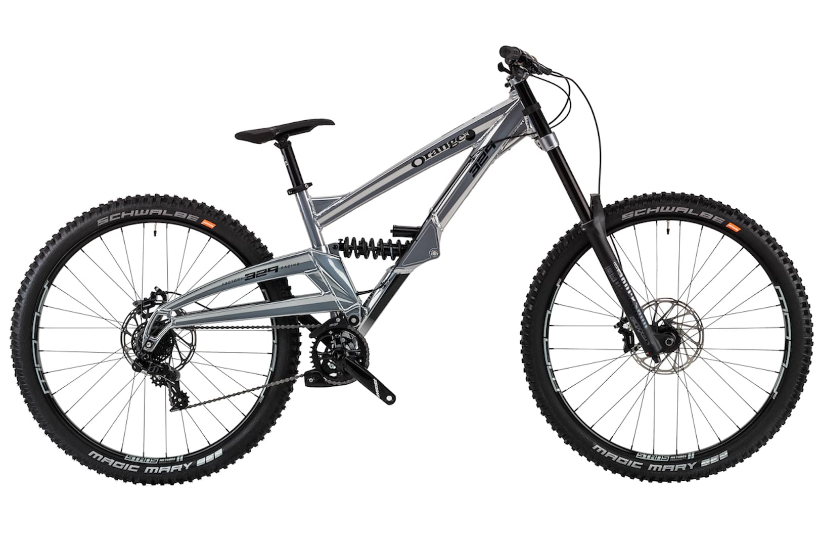 2 versions of the 329 are available as off the shelf, complete bikes, starting with the Orange 329 RS finished with RockShox