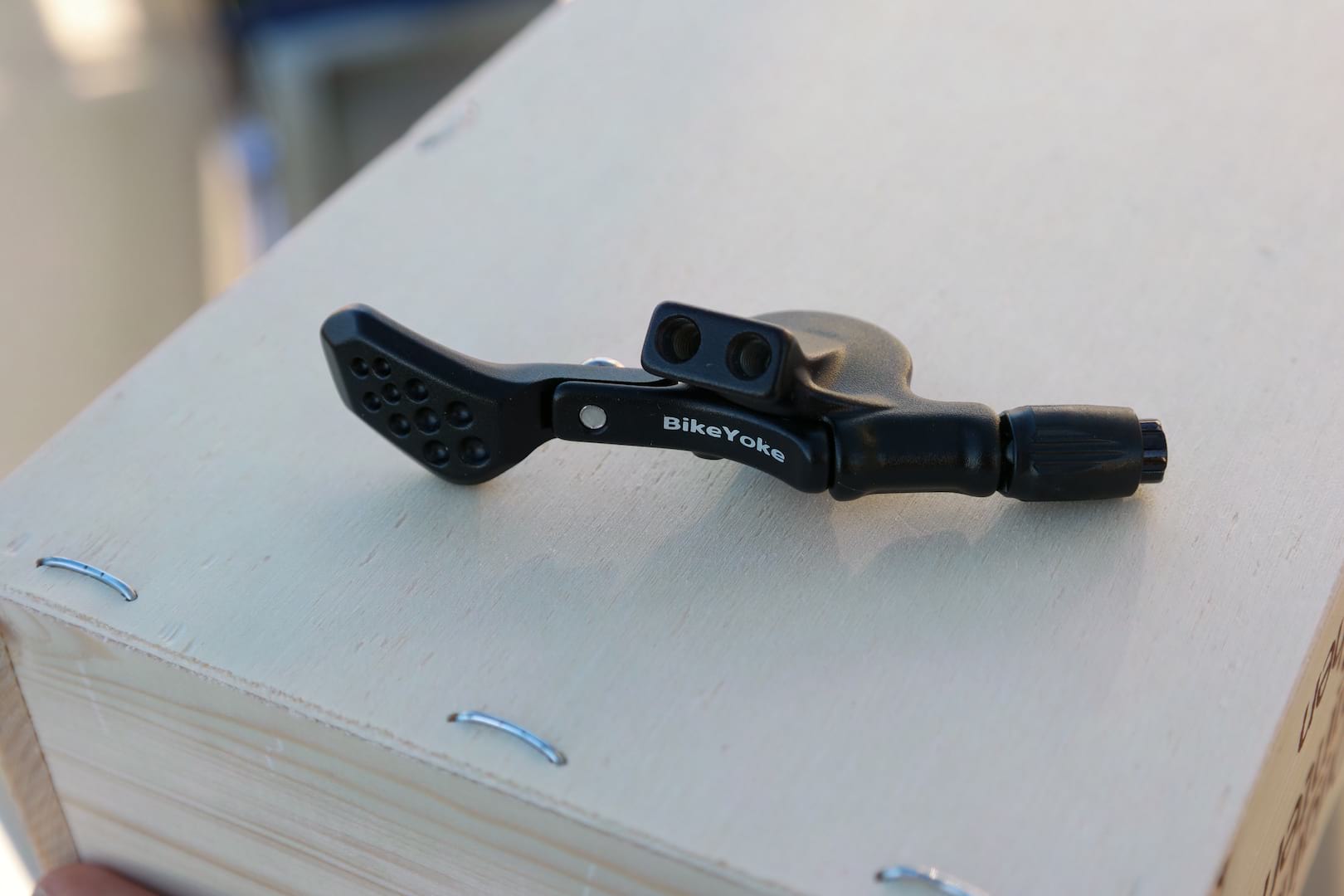 First up is a new Triggy. The Triggy is BikeYoke’s own dropper lever for cable actuated droppers posts. The updated version has been redesigned so that you can use either a cable end or a cable clamp, this means that the Triggy will work with any cable operated dropper regardless what end of the cable enters your frame.