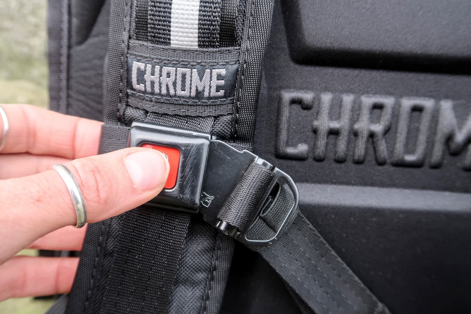 The height of the sternum strap can be adjusted so us girls don’t end up with QuadBoob™, and the seatbelt style buckle is a really efficient little detail that makes this pack feel top quality. It clips together with ease and you simply push the button to release it.