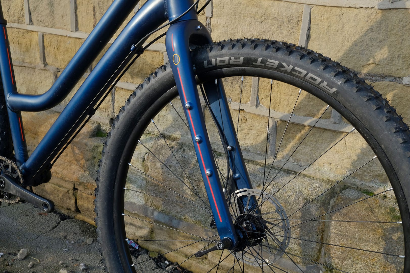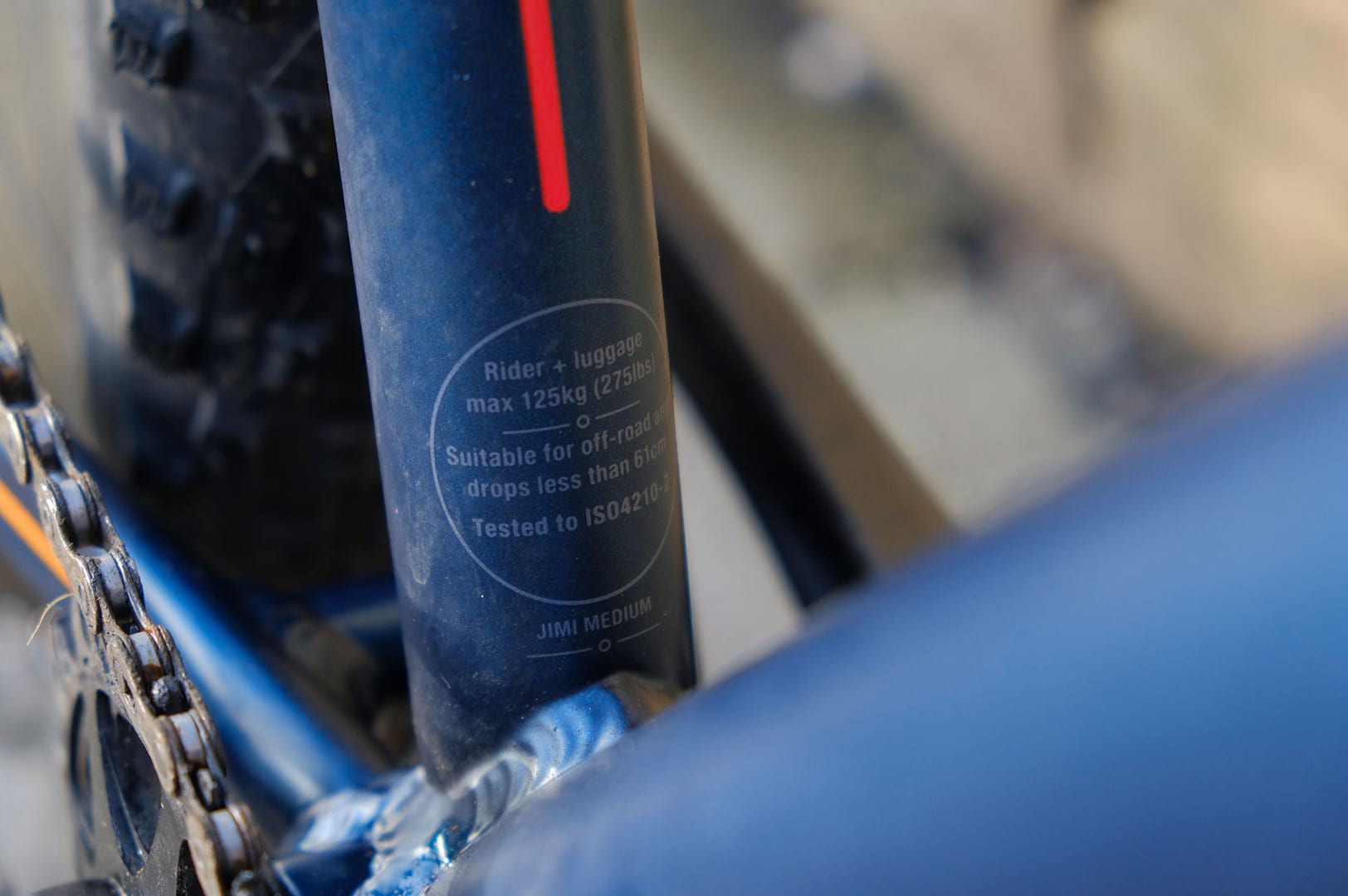 Kevin was the first to ride it, and we did notice that after he’d given it a good thrashing (and if you don’t recognise the local trail names, you should know that he covered some rocky bridleways that might well make a red route at a trail centre) the rear wheel needing a little truing, although none of the spokes were obviously loose. We’ve also subjected it to a good caking in mud, and probably other substances besides, on some further off road and canal ventures.