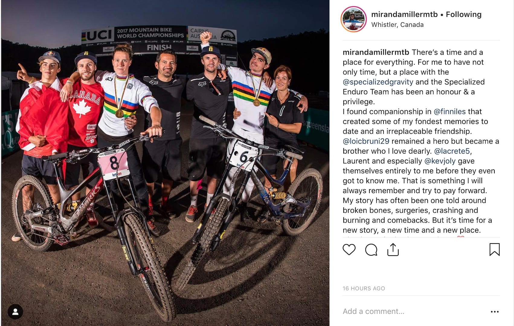“There’s a time and a place for everything. For me to have not only time, but a place with the @specializedgravity and the Specialized Enduro Team has been an honour & a privilege.