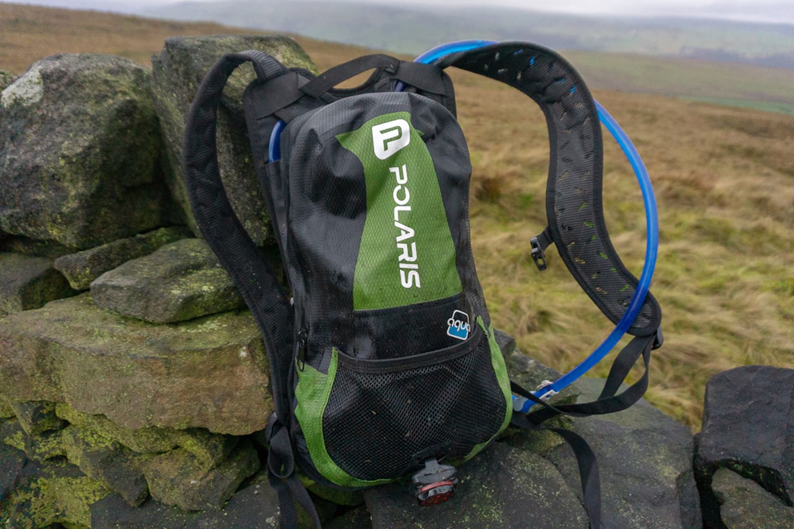 The Polaris Aquanought Hydration Backpack is one of a number of similarly-named waterproof bags from the UK company. The range also includes a waist pack (which we’re also currently testing), a bigger backpack aimed at commuters, and even a holdall to stuff your wet gear in after getting changed at the end of a ride.