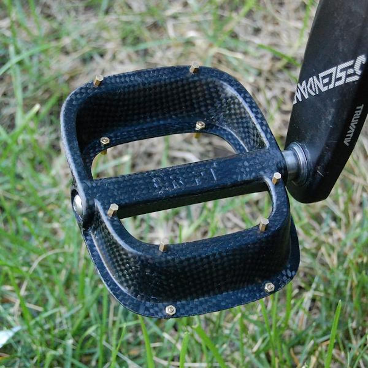 In all honesty, we’re not too convinced by the £254 carbon flat pedal, sure they’re made in the U.S, have 4mm replaceable brass pins and sealed bearing, but the axle is chromoly and the platform is just 95 x 95mm. They do weigh just 262g though.