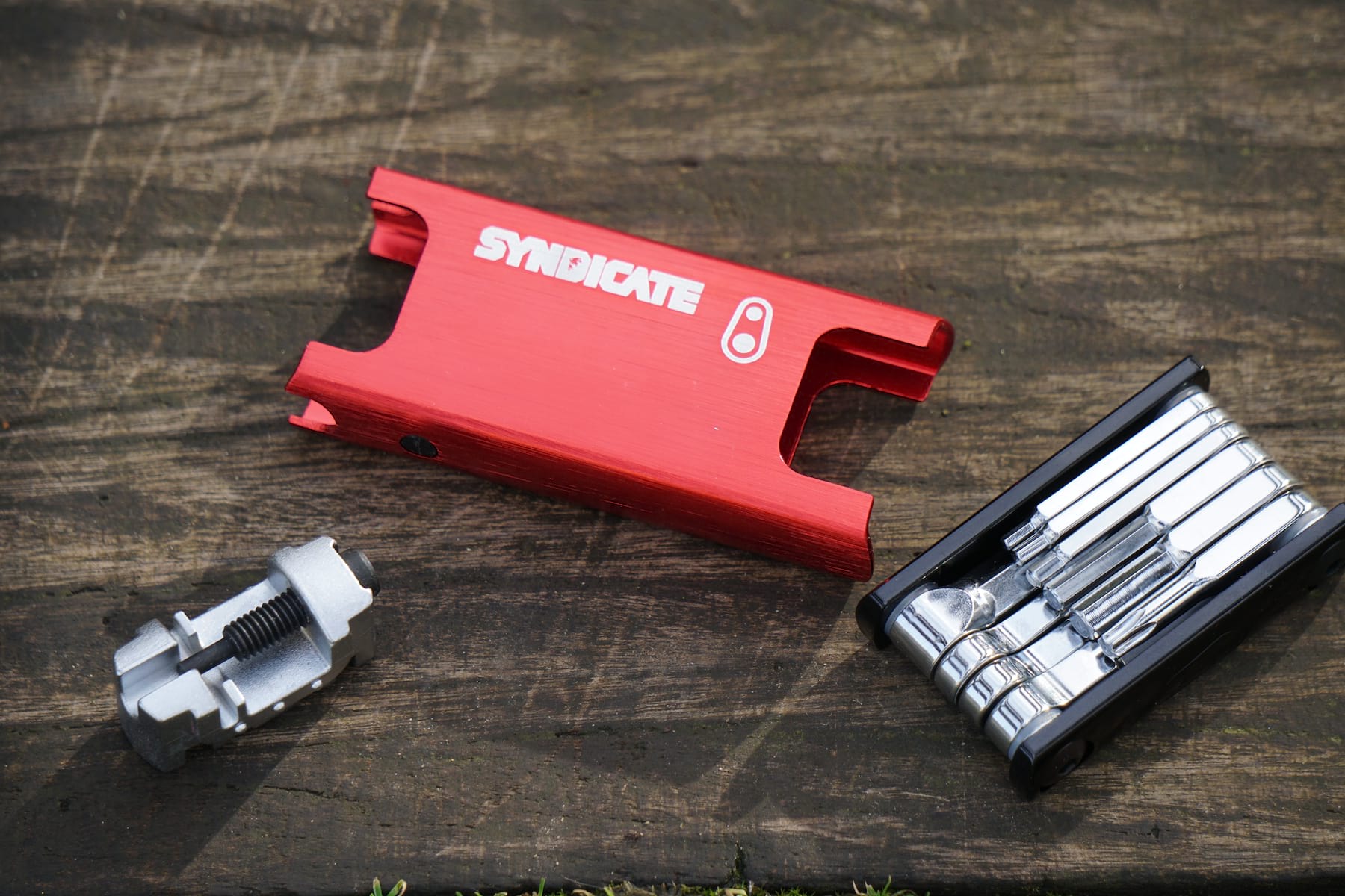 Sure you allegiance to the Santa Cruz Syndicate with this special edition red Syndicate F15 trail tool from Crank Bros. The compact tool has an anodized red alloy body in which a set of tools slips safely inside and are securely held in place with MAGIC magnets. The F15 includes various allen keys including an 8mm for pedals, torx keys, and even a mini-chain splitter.