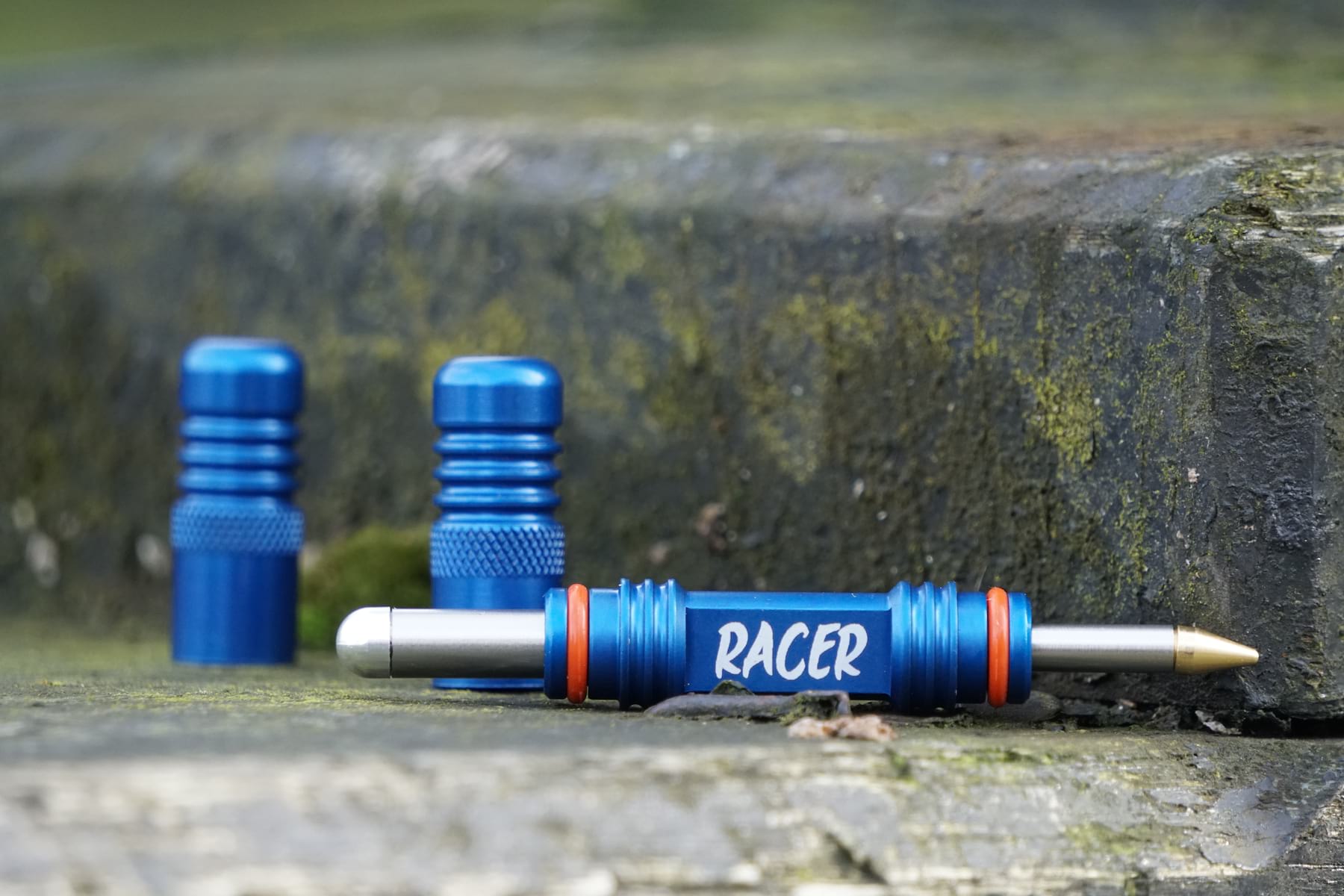 Dynaplug’s Racer is a slim puncture repair tool made from machined 6061 aluminium. The double-ended tool comes preloaded with Dyanplugs own regular plugs on one end and a Megaplug on the other. The Megaplug, for those of you who haven’t heard of one before, is 3 times thicker than a standard plug and will fix those holes sealant simply cannot plug. We’ve been sent a rather lovely blue model but there are other options available including orange, purple, red, gunmetal and more.