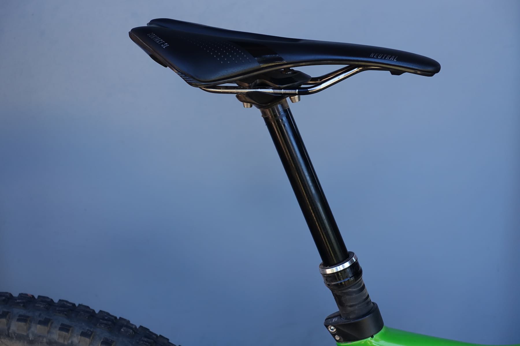 As well as making well-known mountain bikes including the Anthem, Trance and Reign, Giant also produces a whole range of components including wheelsets, bars ‘n’ stems, and dropper posts like the Contact Switch SL. This particular post is a 150mm banger, which is currently the longest stroke dropper from Giant. It’s been fitted to the Trance 29er that Wil’s currently testing, replacing the stock 125mm travel unit for a little more vertical enjoyment.