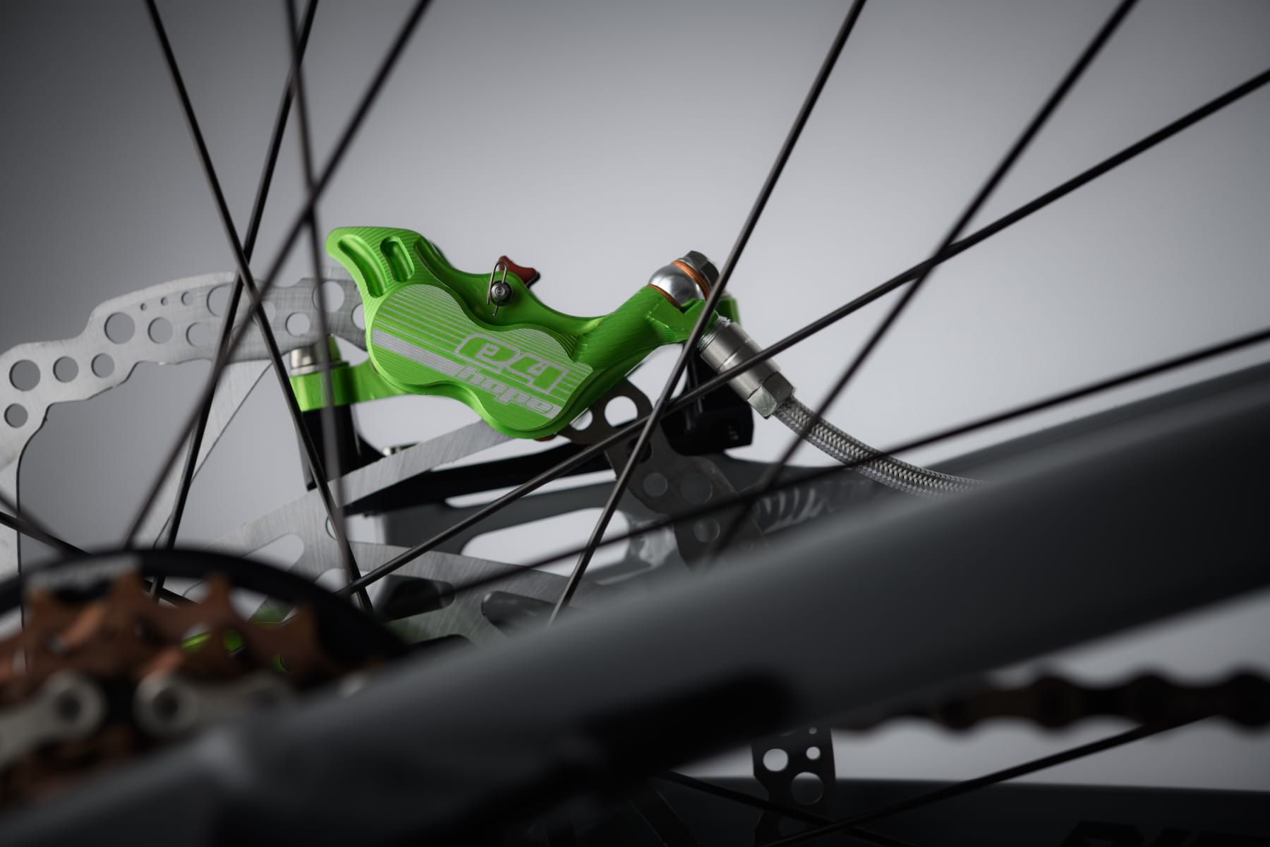 Nukeproof has supplied a load of photos of the Dissent, but it appears to be a custom bike built by Hope for Brayton rather than an off the shelf model that we’ll actually be able to buy. Hope green components are team only after all (no matter how often we ask).