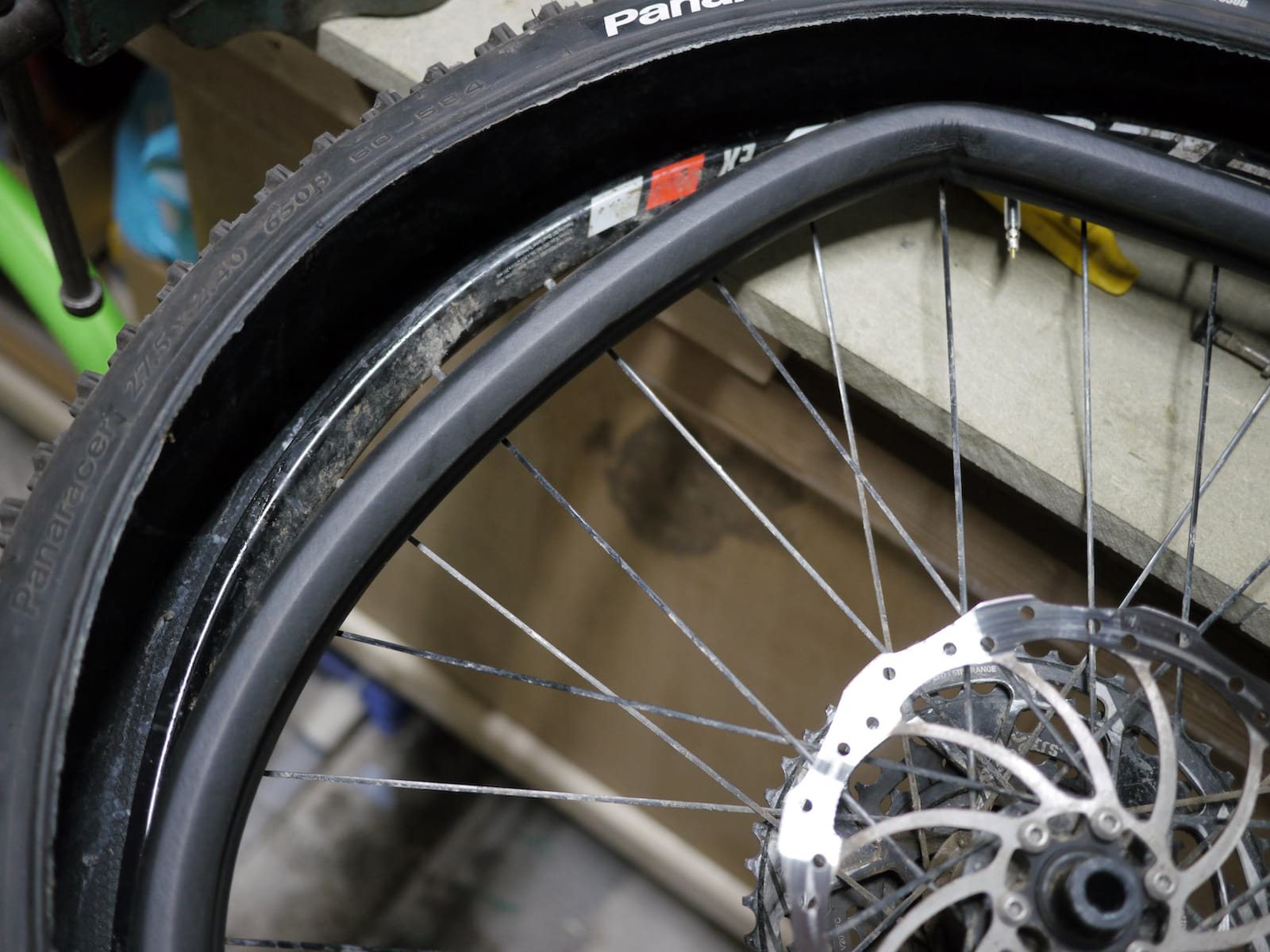 The third time I installed it was at the end of this test, after whipping it out to take some of these photos. It seemed to have slackened over a month of use, stretching around the wheel and going into the rim well much more easily than before. I thought I finally had it in with ease, until I pumped it up and found that now there was a leak at the valve and the bead partway round.