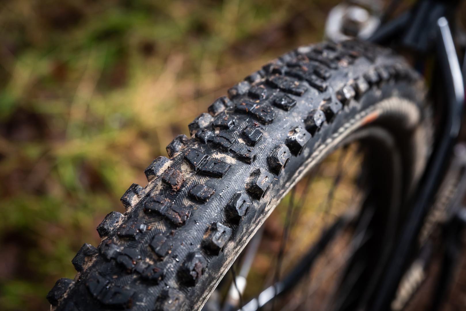 While you could run the Aggressor on the front if you wanted to, in the present company (with a Shorty, Minion DHF and DHR II) it seems daft to do so, so I’ve run it exclusively as a rear tyre, and it’s been brilliant in all conditions.