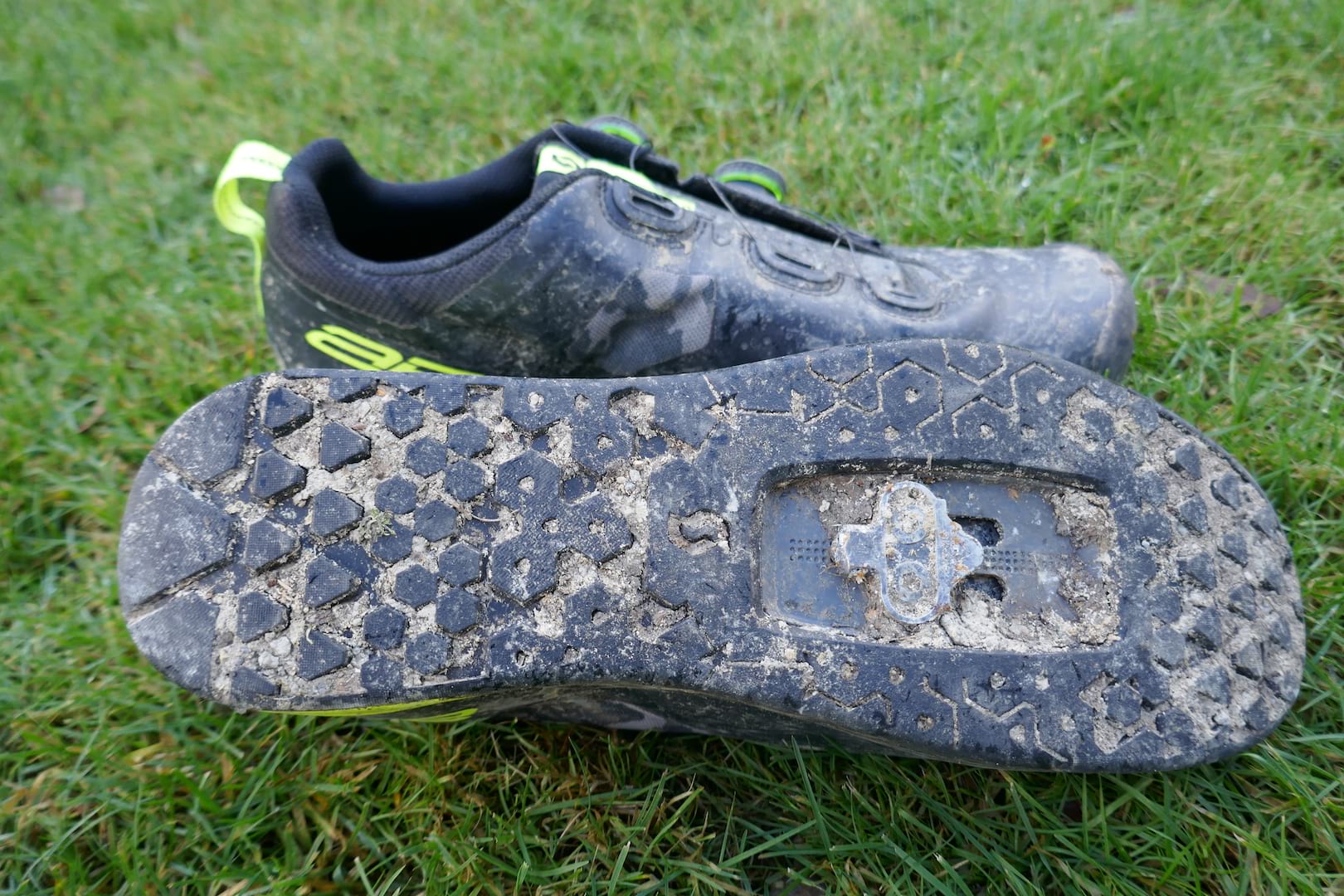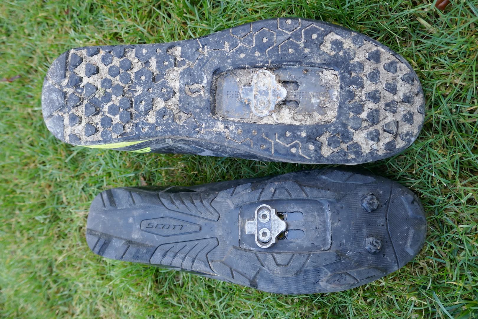 On the downside this sole profile does little to provide any grip when you’re off the bike as there is nothing to dig into the mud to get purchase. Certainly it’s not a shoe you want to be wearing if you’ve got a lot of muddy hike-a-bike ahead (Scott do a few different rugged soled shoes for that).