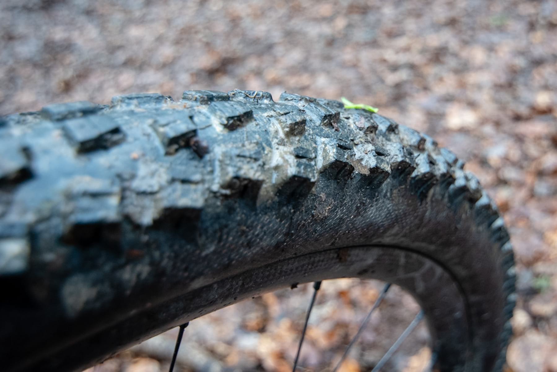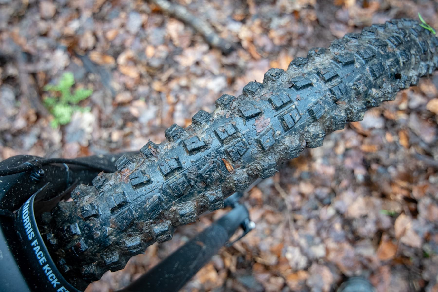 On the front, the tyre performed at its best, surprise surprise, on loose, dry trails. Blind is optional, as is flat out, for that matter, but when genuinely hurtling towards an unexpected switchback down something precipitous, the tyre performed very well. There was little carcass flex even at relatively low pressures, and even when hauling the anchors on and trying to steer the wheel at the same time, it generally went where I wanted it to. Off-camber sections were dispatched with as much aplomb as I’ve ever had, and it hooked up nicely in ruts and roots, thanks to that softer edge compound.