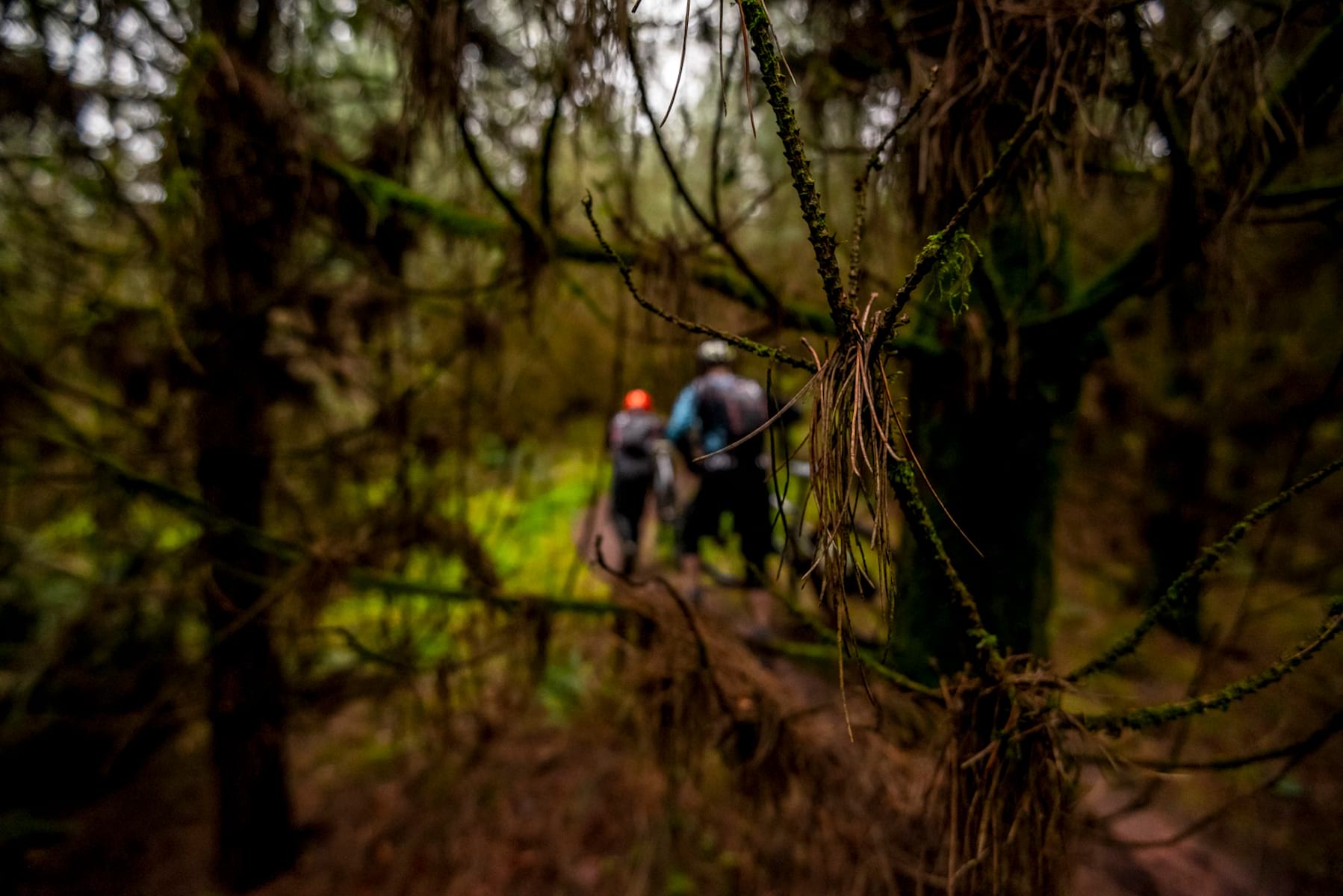 Exploring deeper into the forest, we’re transported to Rotorua. Trees tower above us, the forest floor is a lush carpet teeming with verdant bracken, and yet another sublime piece of singletrack wends its way between the trunks. A cheeky off-camber section tries to catch us off guard, the trail steepens, and we’re spat out onto the fire road at the bottom via an even steeper chute. We could stay here and session these tracks all day, but we’ve got a date with a gorge.