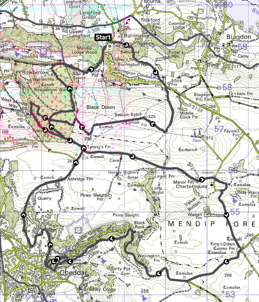 OS Explorer (1:25 000) 141 Cheddar Gorge & Mendip Hills West, or Landranger (1:50 000) 182 Weston-super-Mare.
