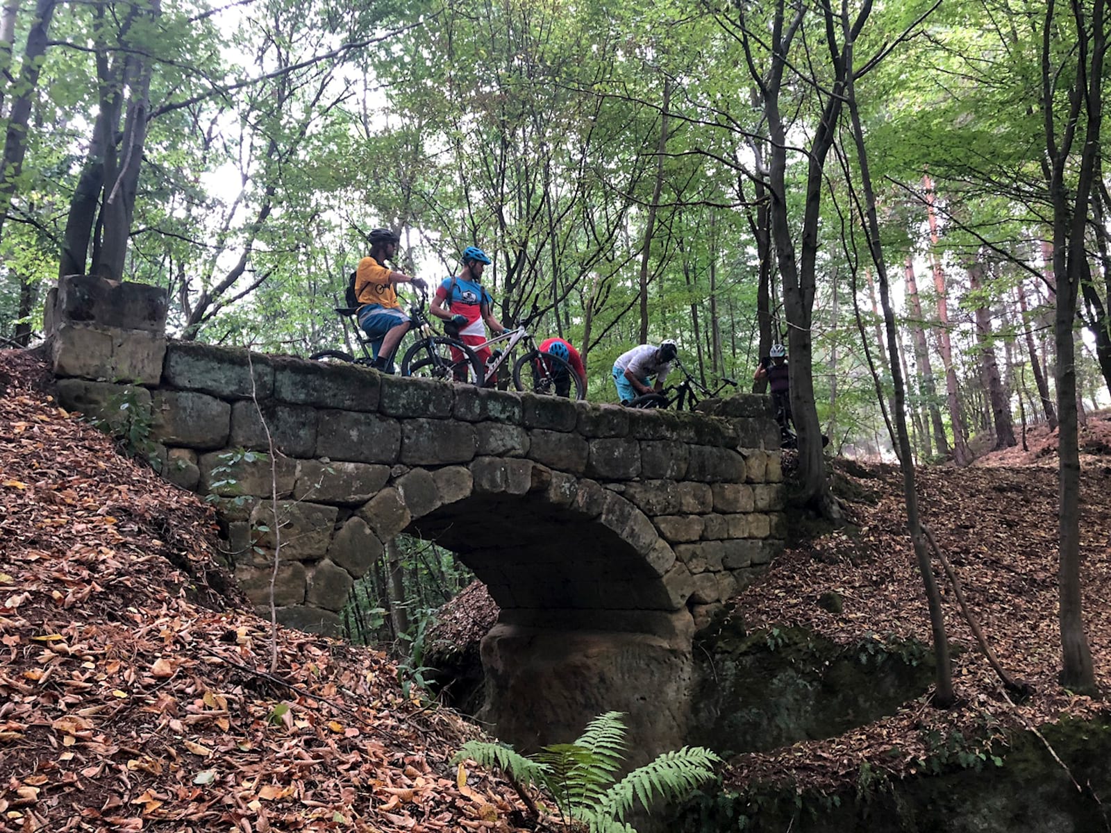 If this revelation wasn’t enough to excite me, we then stopped briefly at an interpretation board and Jan casually announced we were now in Poland – wow, hadn’t seen that one coming. The Polish trails were a little rougher than their Czech counterparts – apparently different funding and maintenance routines – but they all formed part of the same huge network; they wove their way through some equally amazing broadleaf forest, and the fun-o-meter was still cranked up way beyond ten. The best descent yet led us to lunch.