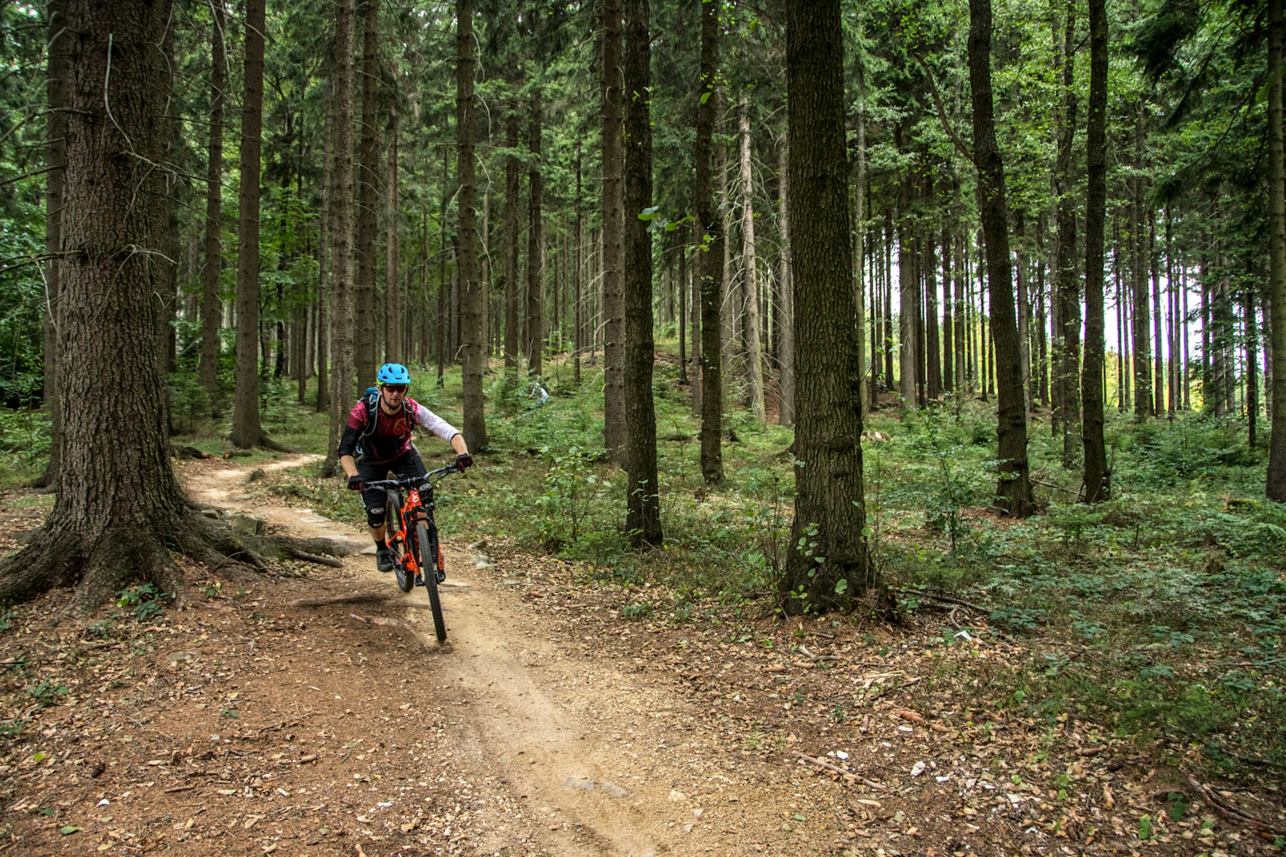 Caffeine hit over and freshly mounted upon a current Trek Remedy – coincidentally exactly the same model I’d been riding in Scotland just a few days before – I chased Jan into the forest on a mission to locate the others, who’d already sorted bikes and gone on ahead.