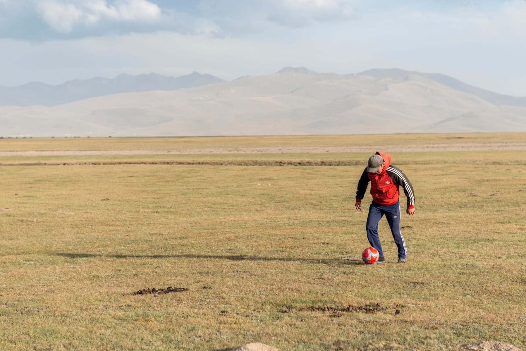 We head back outside to play football and I’m the goalkeeper. I choose the role so I don’t have to run across the plains chasing a football that’s rolling 3,000m down a mountain while being unable to breathe. They think I’m really good at saving goals, but the truth is that I keep moving the stones in to make the goal smaller when they are not looking.