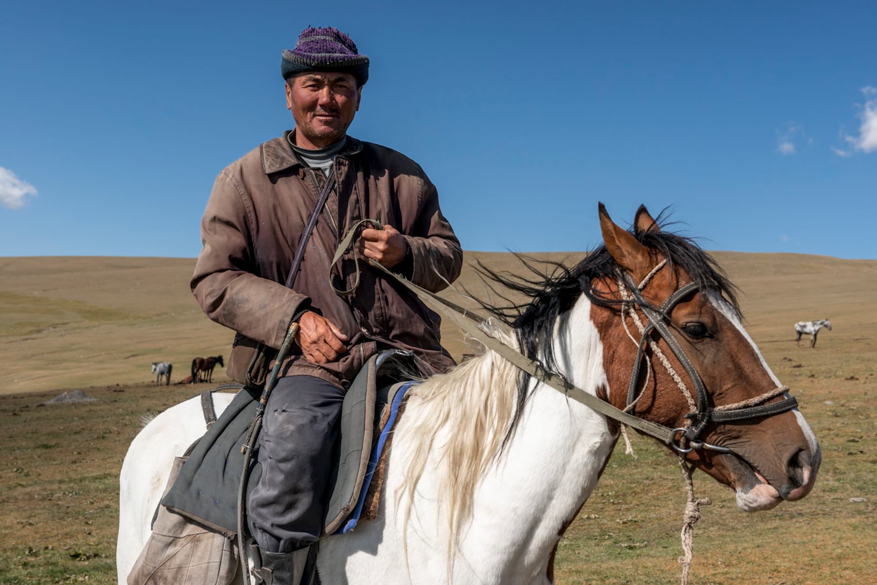 The thundering grows close. Over a blind brow, in a blaze of sunlight, a ripped, powerful pack of Kyrgyz horses rise up into view. I stop in my tracks. The eagle floats gracefully above them, framed by an endless sky and never-ending horizon.