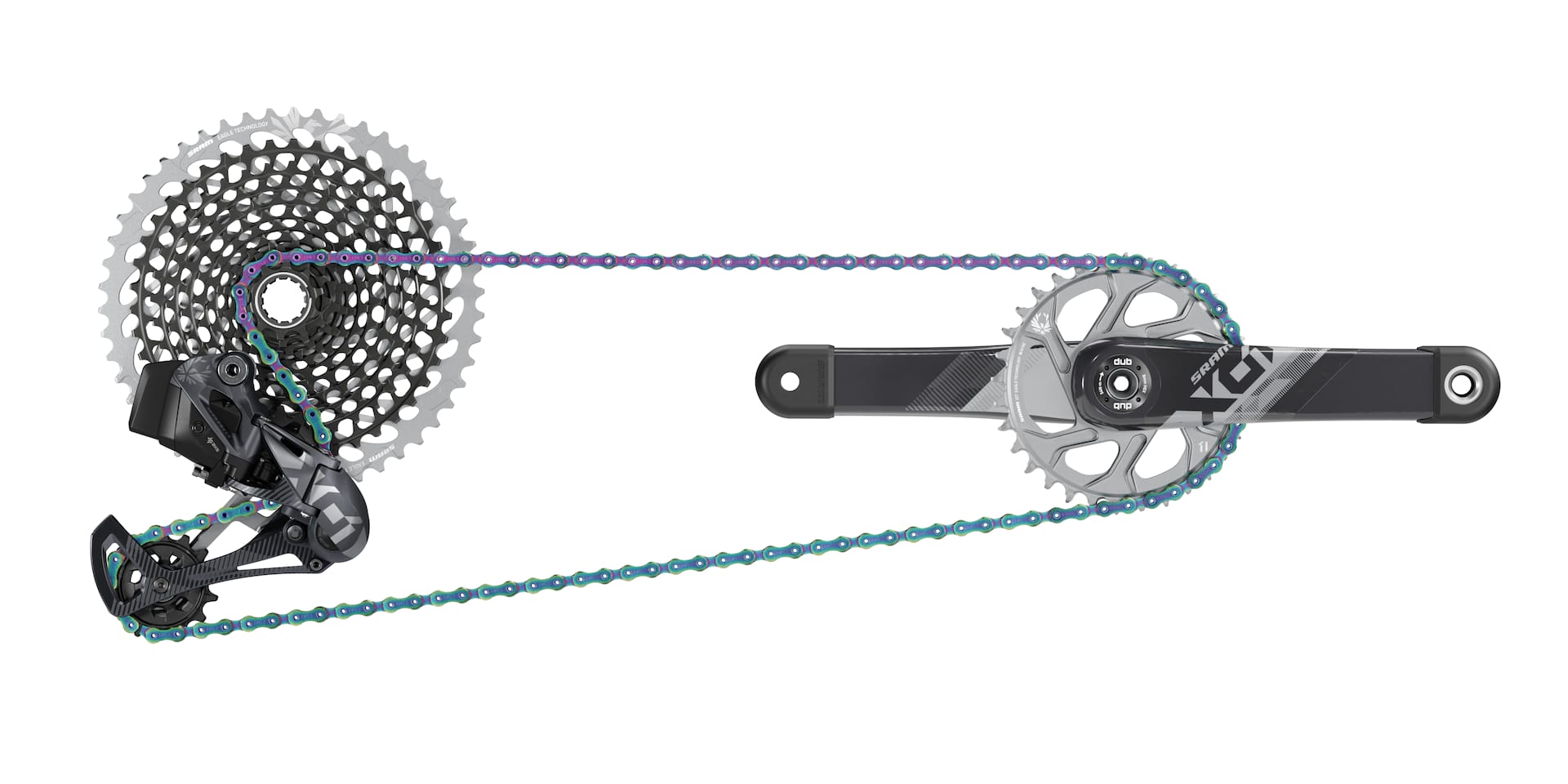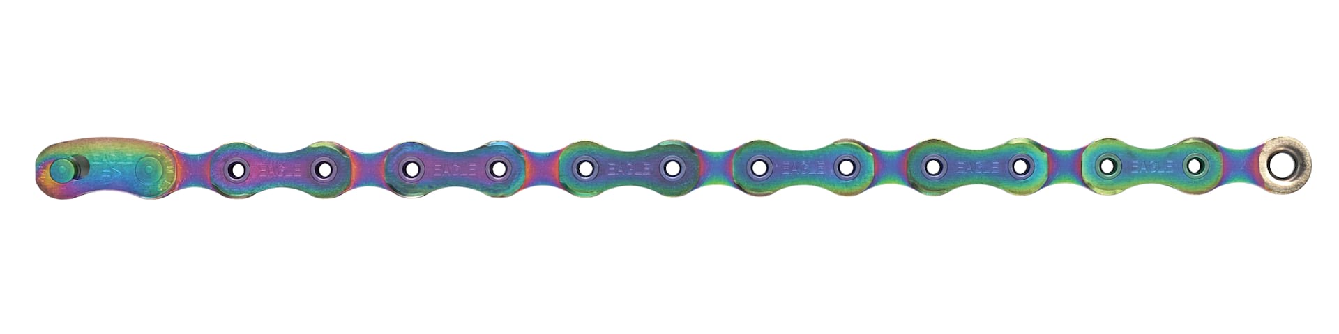The cassette, cranks, chainring and chain have also undergone some changes. These are not specific to AXS functionality, and are the latest iteration of Eagle product, although to begin with they’ll only be available as part of the AXS groupset. If you’ve admired the rainbow oil-slick finish on Eagle quick-links, you’ll like these updates. As well as some machining differences, XX1 gets a complete rainbow cassette, while the XO1 chain takes on the rainbow-unicorn hue. Hey, why not. We want it because we like it, not because we need it.