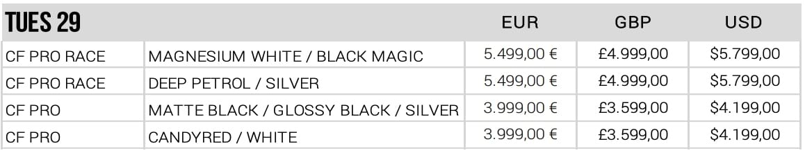 Customers can choose between two carbon build kits in two colours each and three frame sizes.