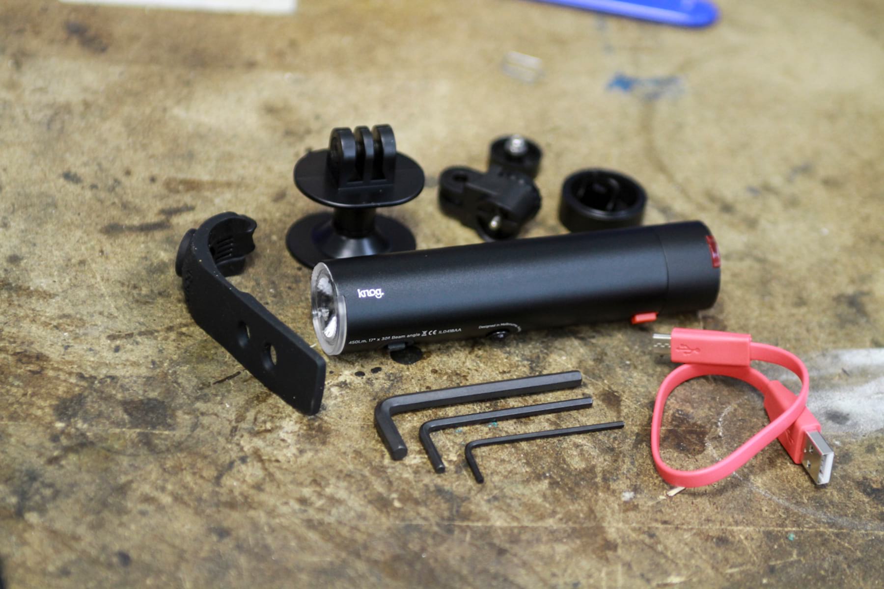 Mount this to your helmet for a front and back light in one – there’s a red 12 lumen rear light on one end, and a 450 lumen white front light on the other. The front light has six different modes – three steady and three flashing, while the rear light has a choice of steady or flash. The light also acts as a battery pack, so in an emergency you could use it to charge your phone or bike computer.