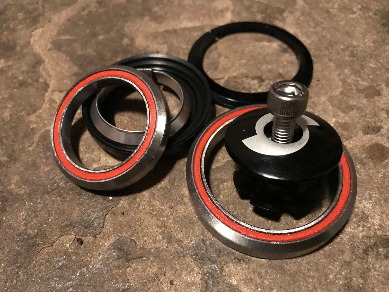 A sealed, integrated headset for tapered headtubes, or in this case specifically for the Sonder Transmitter that’s half built in Amanda’s front room.