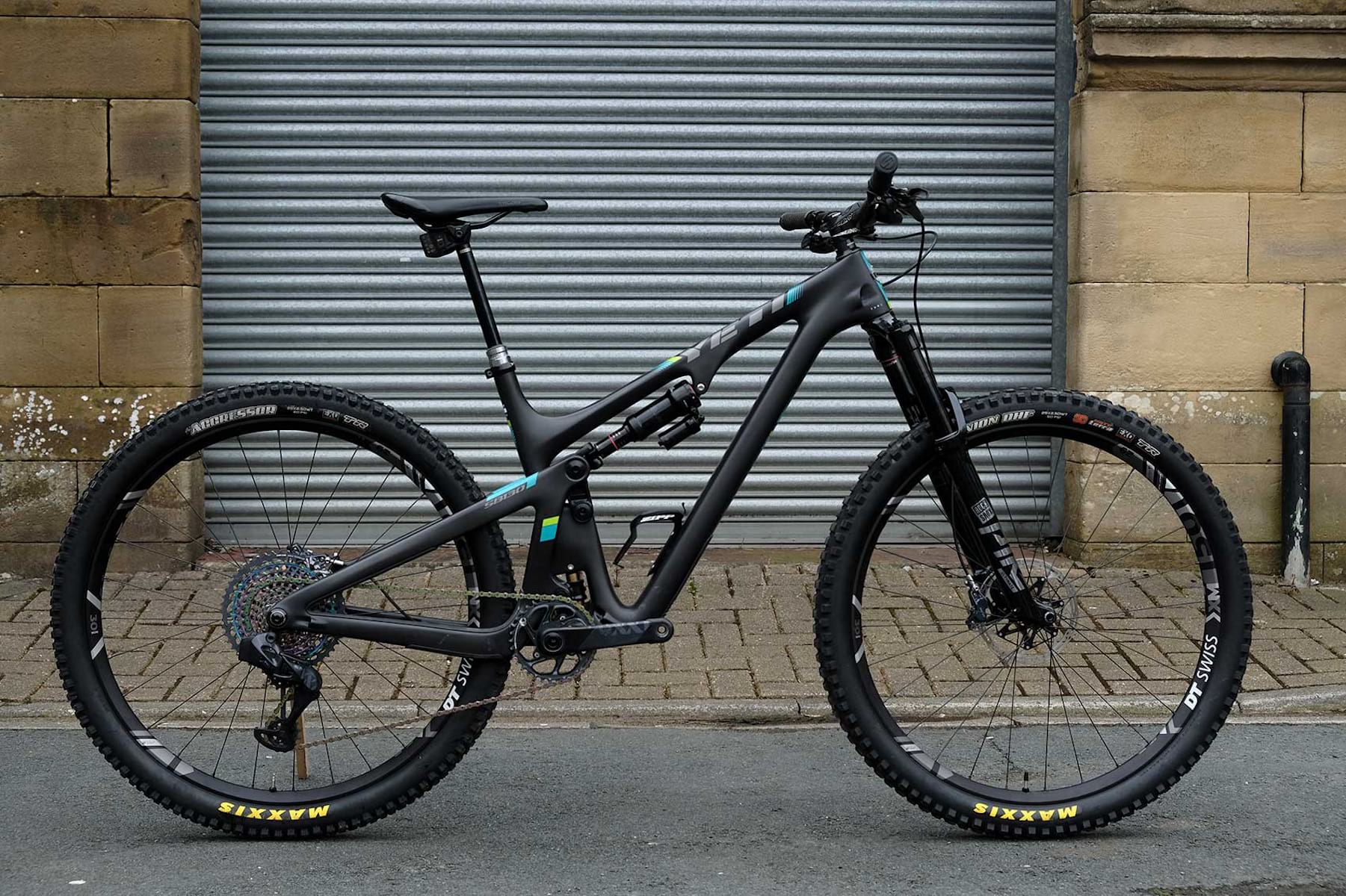 This bike is so special that Yeti importer Silverfish doesn’t even offer it. Though you can build one up with a frameset and an AXS groupset if you wanted. It’s actually come from SRAM for us for a couple of weeks so that we can try out the new SRAM AXS (it’s pronounced ‘Access’, geddit?) electronic, wireless shifting system and the wireless Reverb AXS dropper post. Initial car park (and trail) tests have been positive, and we’re going to give it a couple of weeks of thrashing.
