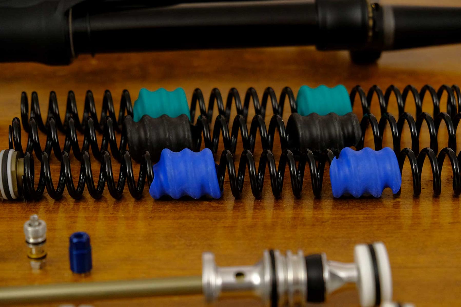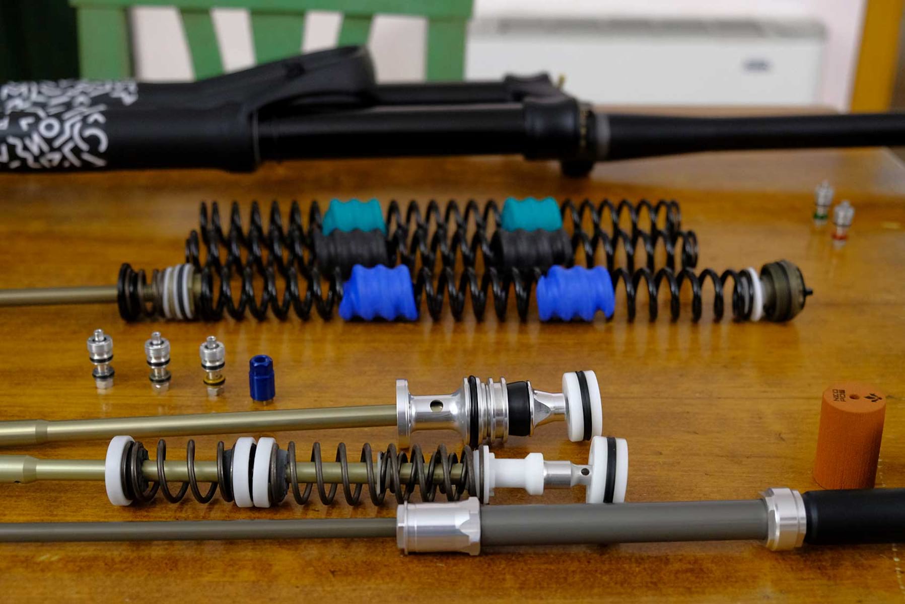 A quick glance at the bikes show a telltale ‘Spring preload’ knob on the left hand fork leg where you’d normally expect an air valve. And a bounce on the forks gives away that instant suppleness that coil fork users love. So, in our meeting with Vittorio from Formula, it wasn’t a surprise to see big coils on the meeting room table. Let’s dig into the details: