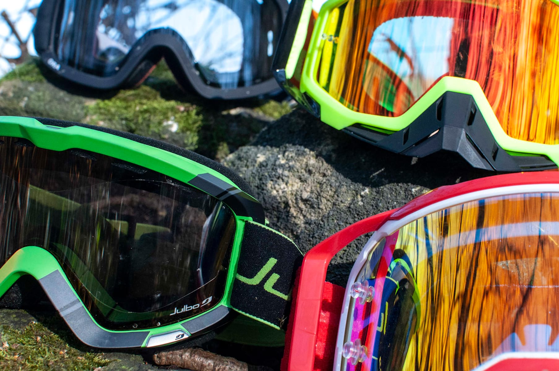 Each of these goggles offer something slightly different in terms of their shape, fit and feature list. For instance, the Julbos are a very compact goggle, with a super high quality lens. On the other end of the spectrum, the 100% Racecraft MX use a large and bulky frame, aimed at the motocross market. One isn’t necessarily better than the other, but both offer different features which may suit certain riders better. We also have a range of lenses within the test, to find out what performs best, where.