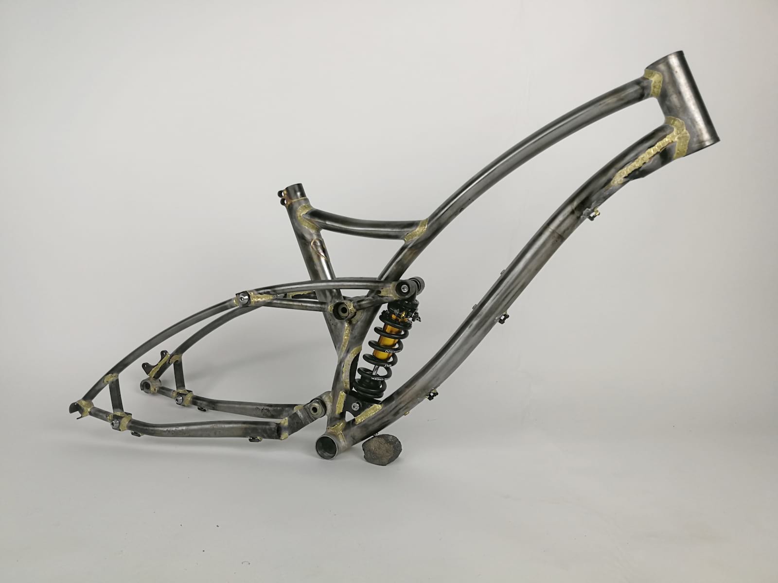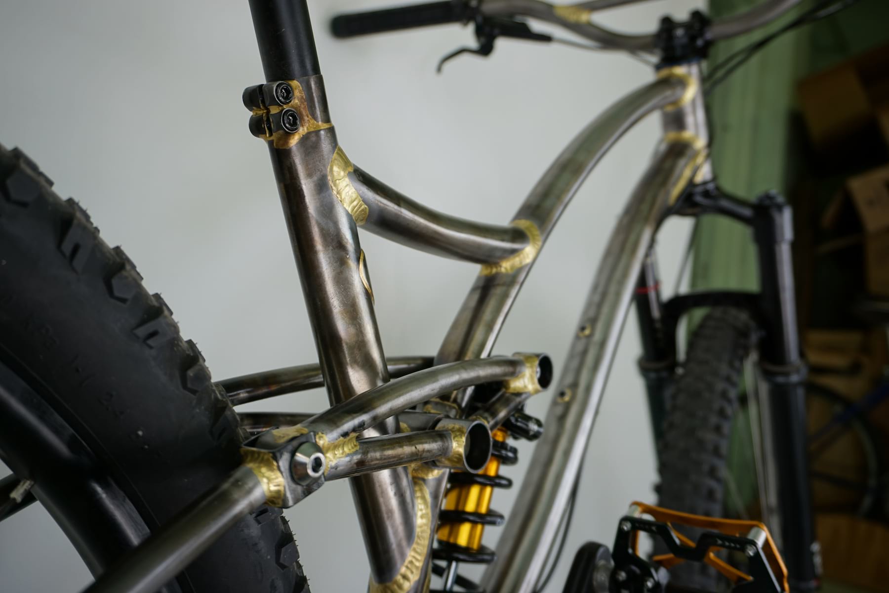 While mooching round this virtual sweet shop, we stumbled across this rather fetching niche ticker. Steel, hand built, fillet brazed, full suspension… Elsewhere on the internet people pay to have their specialist proclivities tickled and teased, here were a bunch of ours all being checked off in one helping. We had to find out more, so Hannah caught up with its American builder, Cjell MonÄ“.
