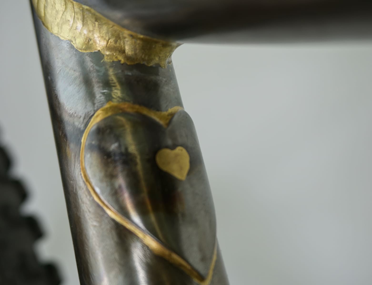 What ill-chosen tattoo is the heart on the seat tube covering up?