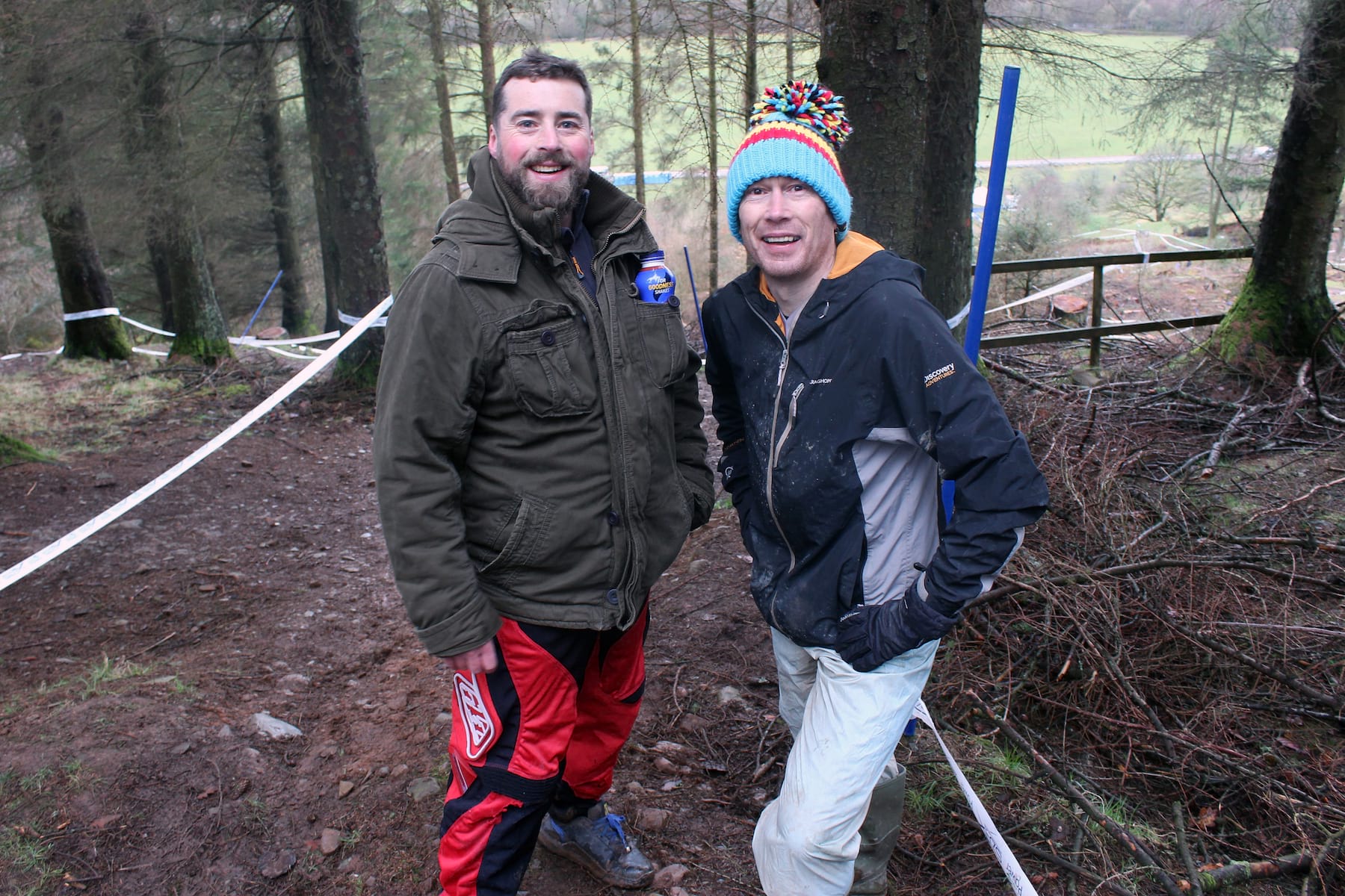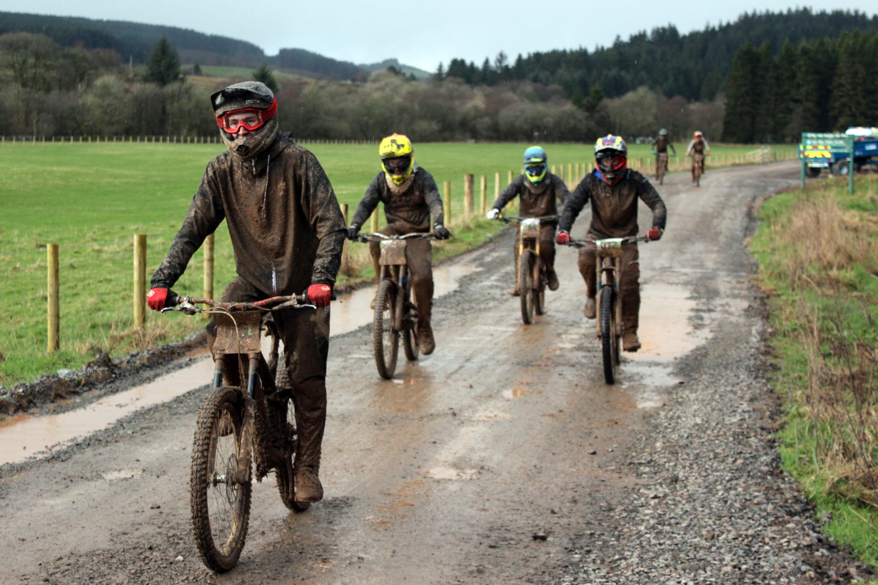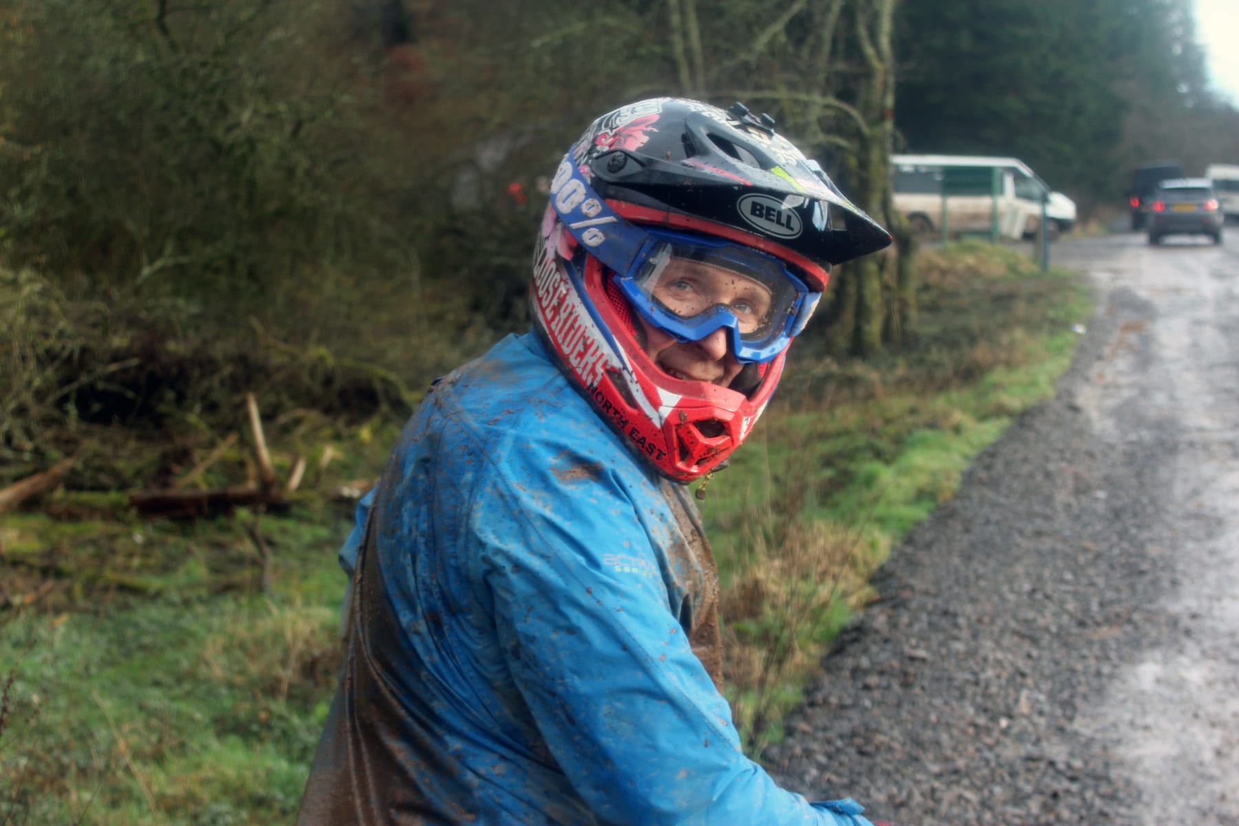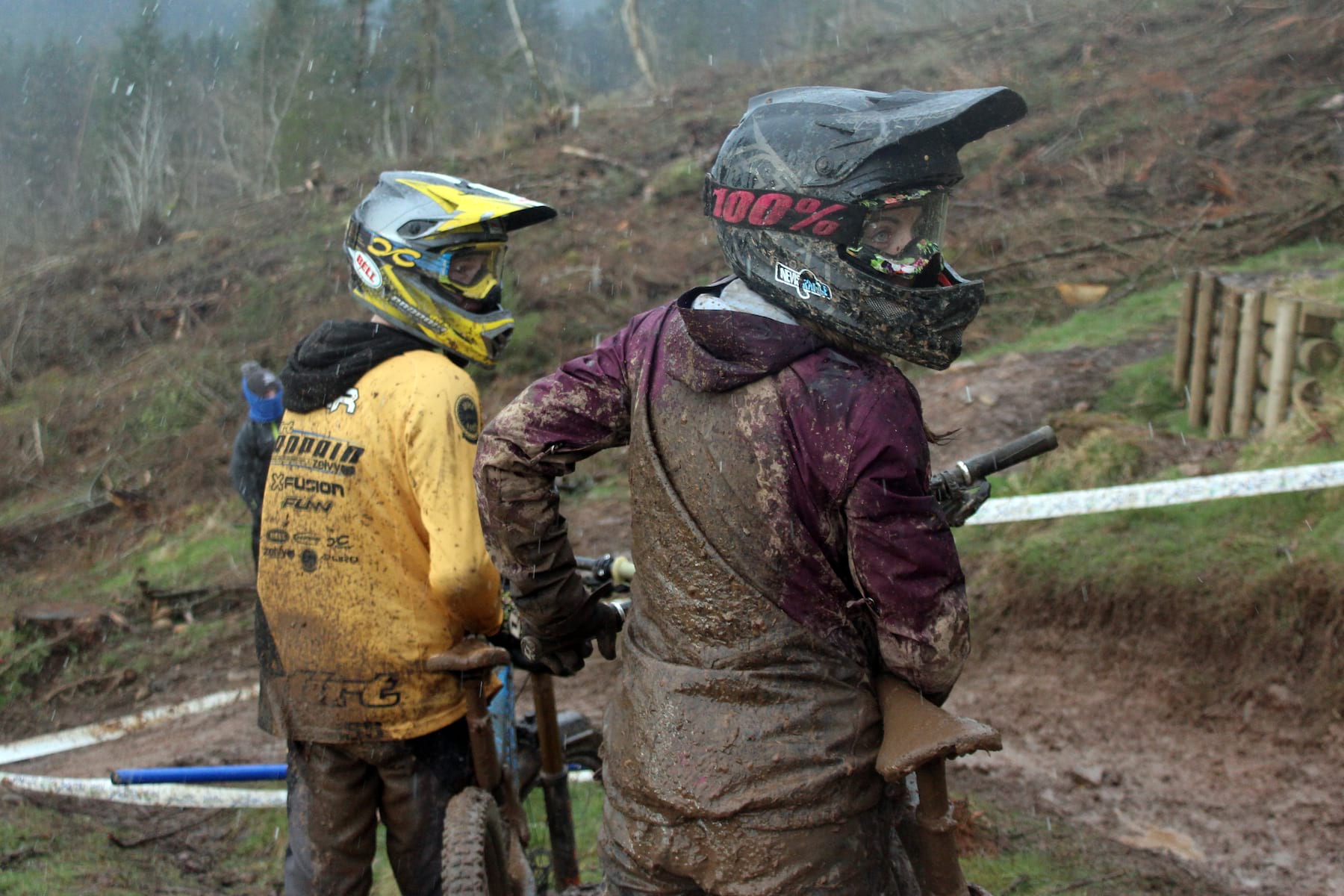 The Vets and Grand Vets are grouped together in a 40+ category and it’s pretty strong. Masters World Champion Mark Weightman’s here. Of course he is, the weather’s terrible and the course is tricky. Then there’s multiple World Champion Alastair Maclennan, 2018 National Series winner Marky Neal and the fastest man still on 26” wheels, John Young. Add in Stevie Cousins and that’s probably going to be the top 5. Dave Ingelby’s here despite it being his 18th wedding anniversary, which some might think is quite a big deal. He’s been left reeling because Mrs Ingleby handed him a card as he was leaving. ‘We don’t do cards’ he tells us, which is code for ‘I didn’t get her one’. I’m sure it will be fine. I’m sure.