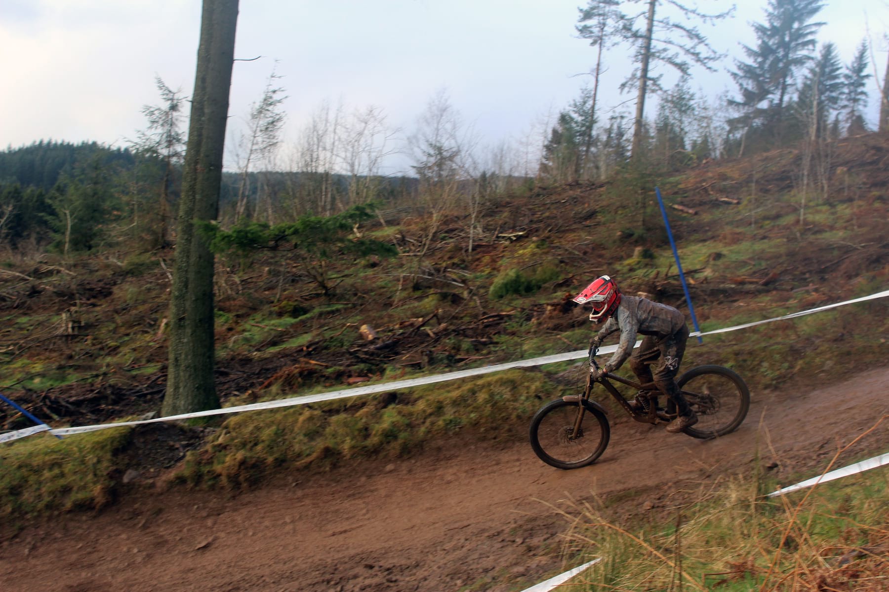 Although it’s been over five months since the last race, I don’t feel prepared. The team jerseys only arrived back last Friday, the bed isn’t back in the van yet and I haven’t even got started on the intervals I was planning to do. The plan was to travel up to Ae on Friday afternoon, but the forecast was grim. My abiding memory of last season’s opening race is the temperature gauge showing -8°C when I turned the engine off at 8pm. Another year older and maybe a little bit wiser I ditched any thoughts of sleeping in the van and booked a bed and breakfast for Saturday night. The last time we did this, we left it so late the only place within driving distance was a Manor House. Binnsy enjoyed the fine dining; probably the only time a DH racer has had Pigeon Breast with a Redcurrant Jus the night before a race run. He’s not here this weekend though. Having ripped his kitchen out he needs to get the new one installed ASAP. I’m sure if the weather had been nicer this could’ve waited.