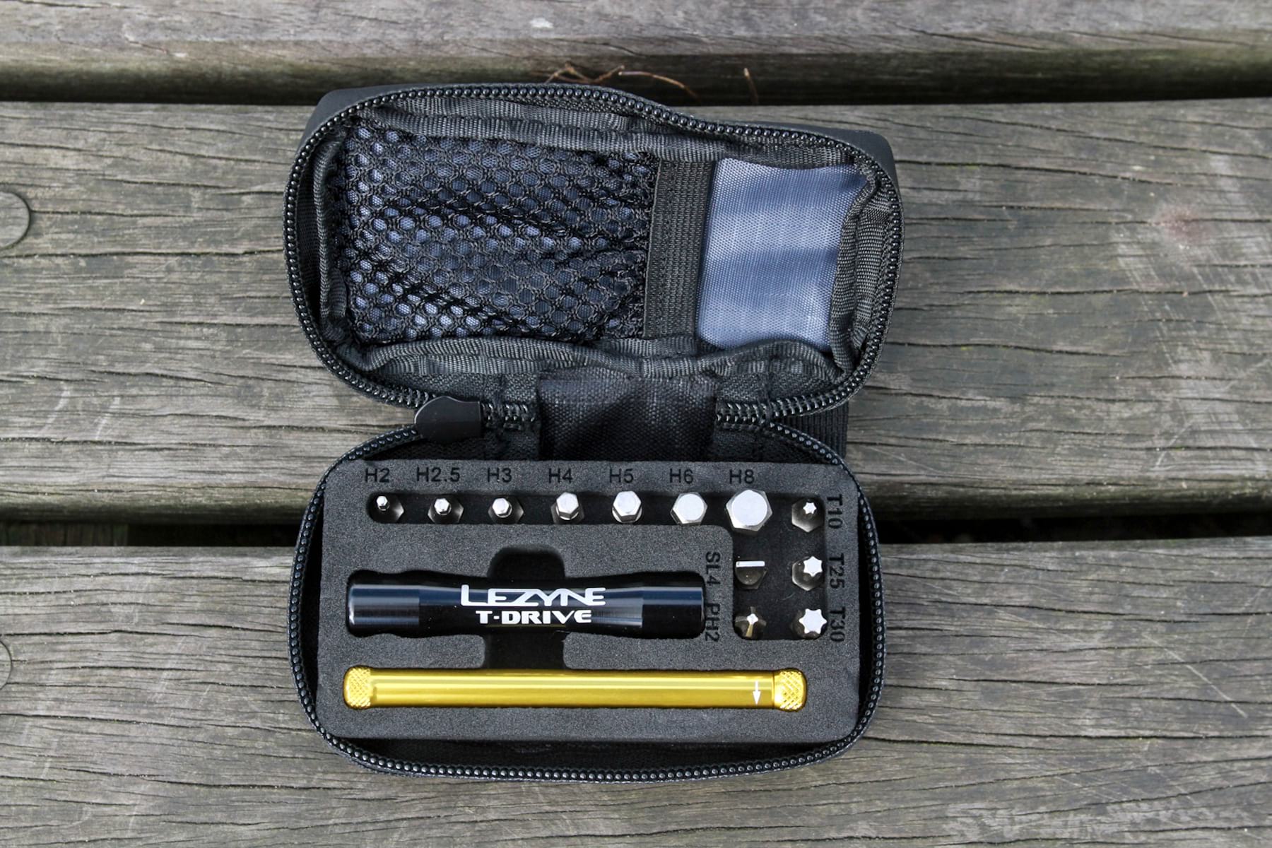 If you can’t get by with five tool bits, how about twelve? The T-Drive from Lezyne is extremely compact, offers the same system of a screw in handle and it comes in a padded carry case.
