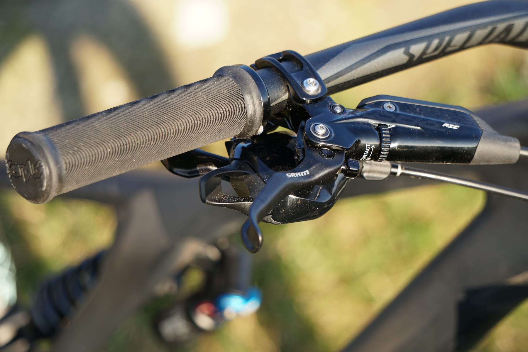Code RSC brakes with 200mm rotors all round, made for brutally efficient braking with all the adjustment you could possibly need. Even on my steep trails, in the dry I found I could happily control my speed with the just the rear brake, almost bringing the bike to a complete stop on one occasion in order to regain my balance to make a particularly sharp stepped turn. Top stoppers then. Be warned though when the weather turns wet they do like to sing…