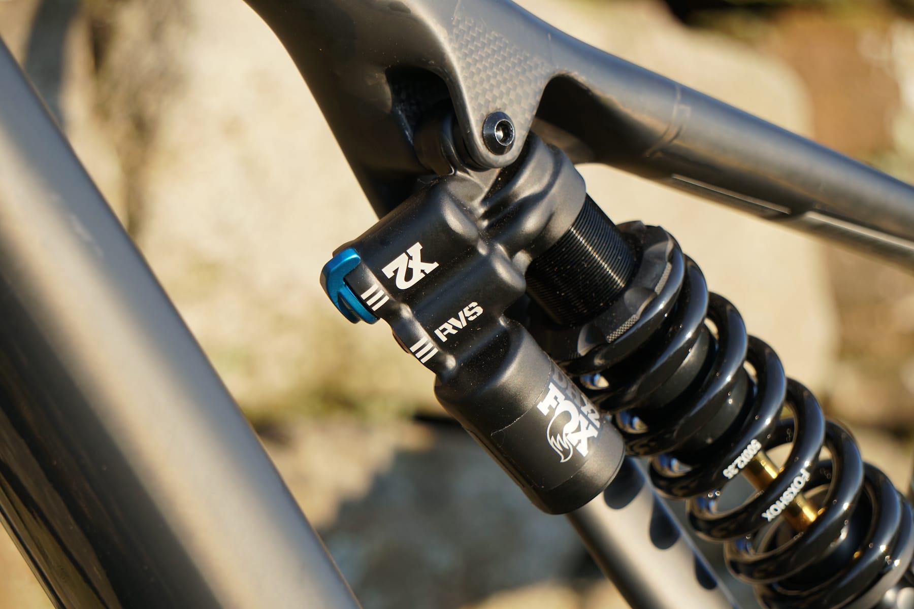 A closer look at the component choices shout rather than hint at the bike’s intended purpose. There’s a 150mm travel Fox 36 Performance Elite fork out front, which gear snobs may point out hasn’t the benefit of Kashima coated stanchions. But once pressurised and set up, it performed faultlessly in test, only being slightly outshone by the Fox DHX2 coil shock out the back.
