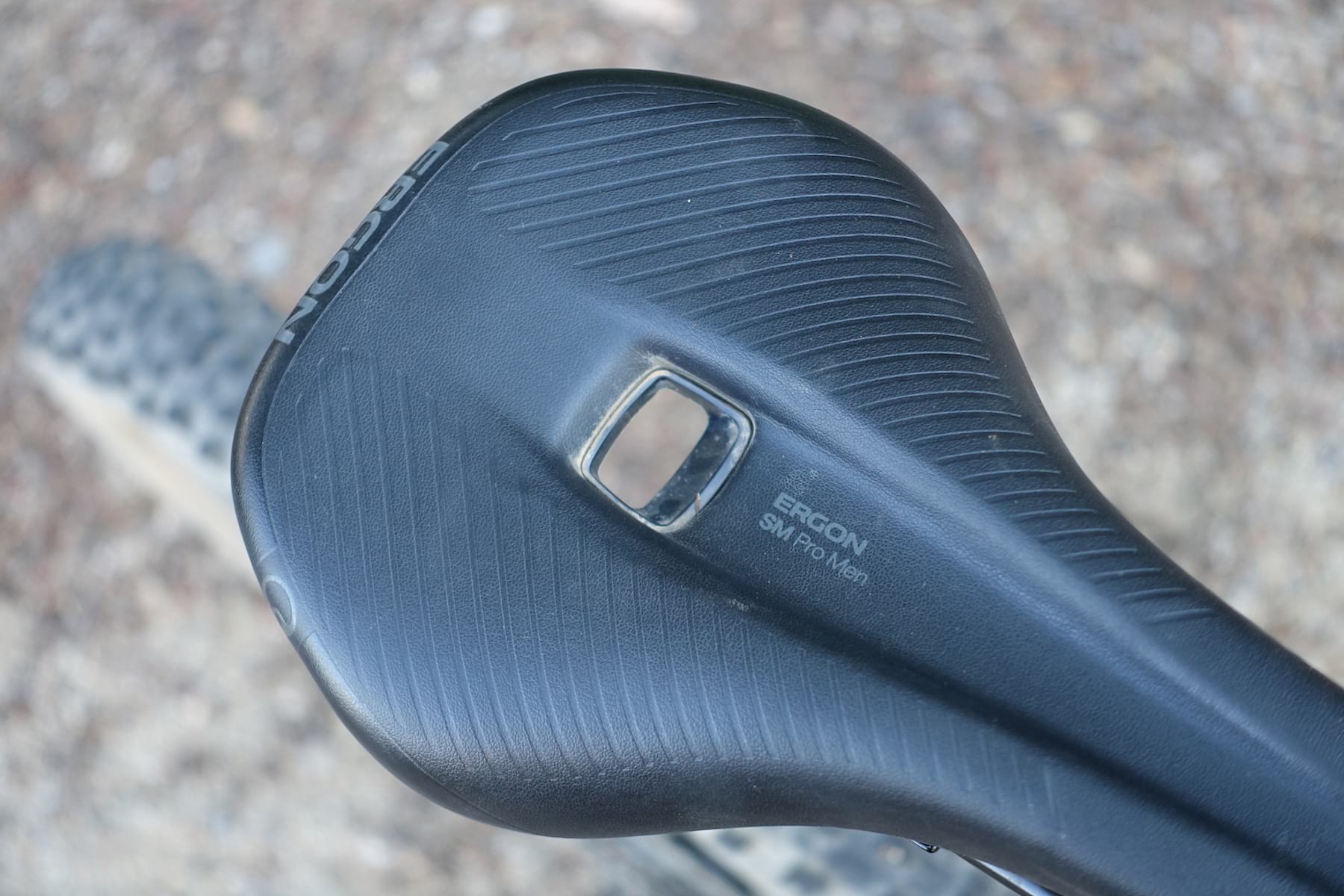 Curiously, this is the first Ergon saddle to feature a cutout. Ergon states that cutout saddles typically end up being too stiff, since the rigid base needs to be heavily reinforced after cutting a big ol’ hole out of its structure. That might explain why the SM saddle only gets a wee little window then, and not a gaping chasm like some other saddles.