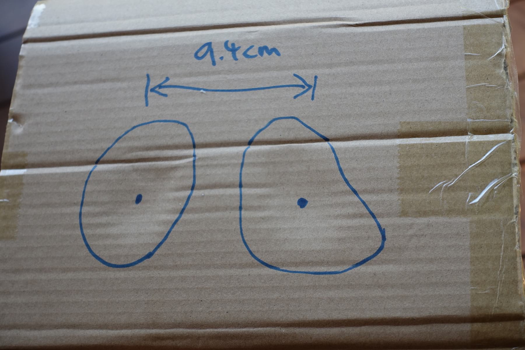 I got myself a panel of cardboard, placed it onto a stool, then sat on the cardboard with my feet on the ground and my knees at around a 90° angle. It’s best to do this with just your undies on (rather than with your padded bike shorts), as it’ll allow your pointy bum bones to push down into the soft cardboard, and leave behind two nice little indents.