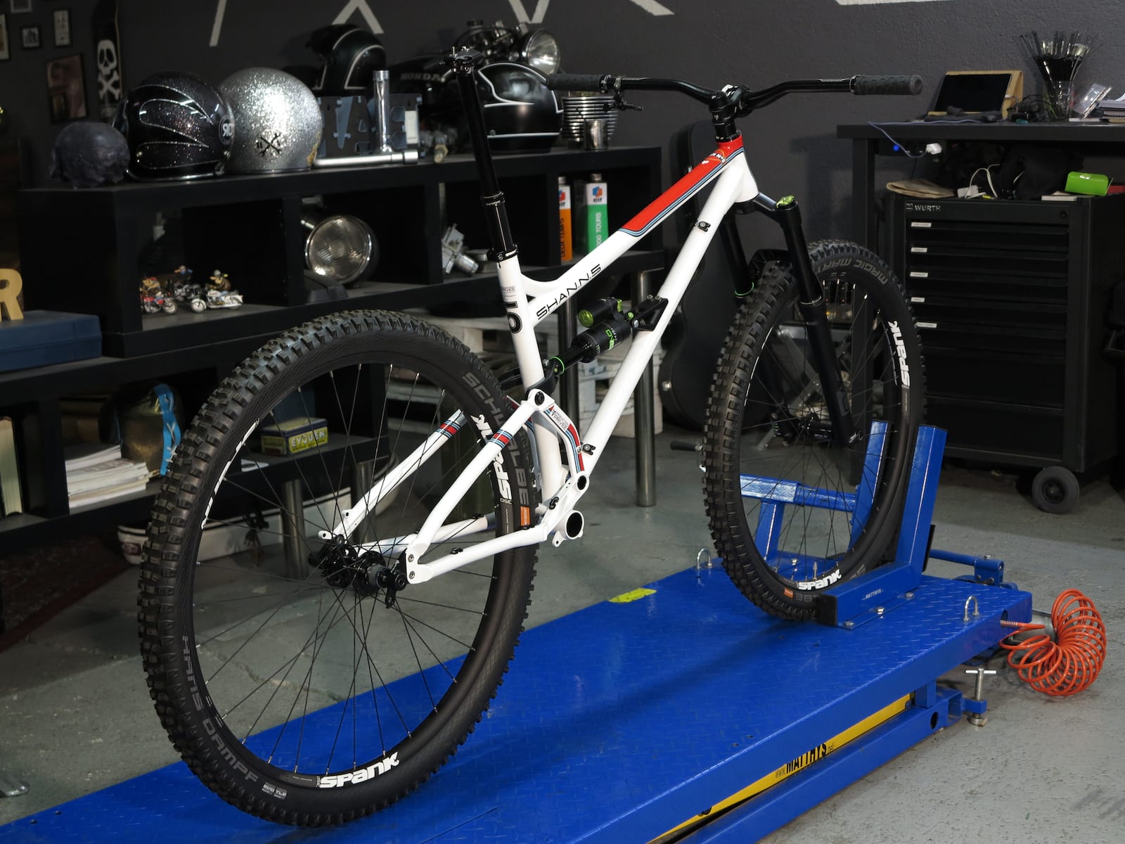 Switching between wheel sizes requires a change in shock yoke, and before you ask, no you cannot swap the yoke on the original Shan No.5 and run larger wheels, the rear triangle doesn’t have the clearance.