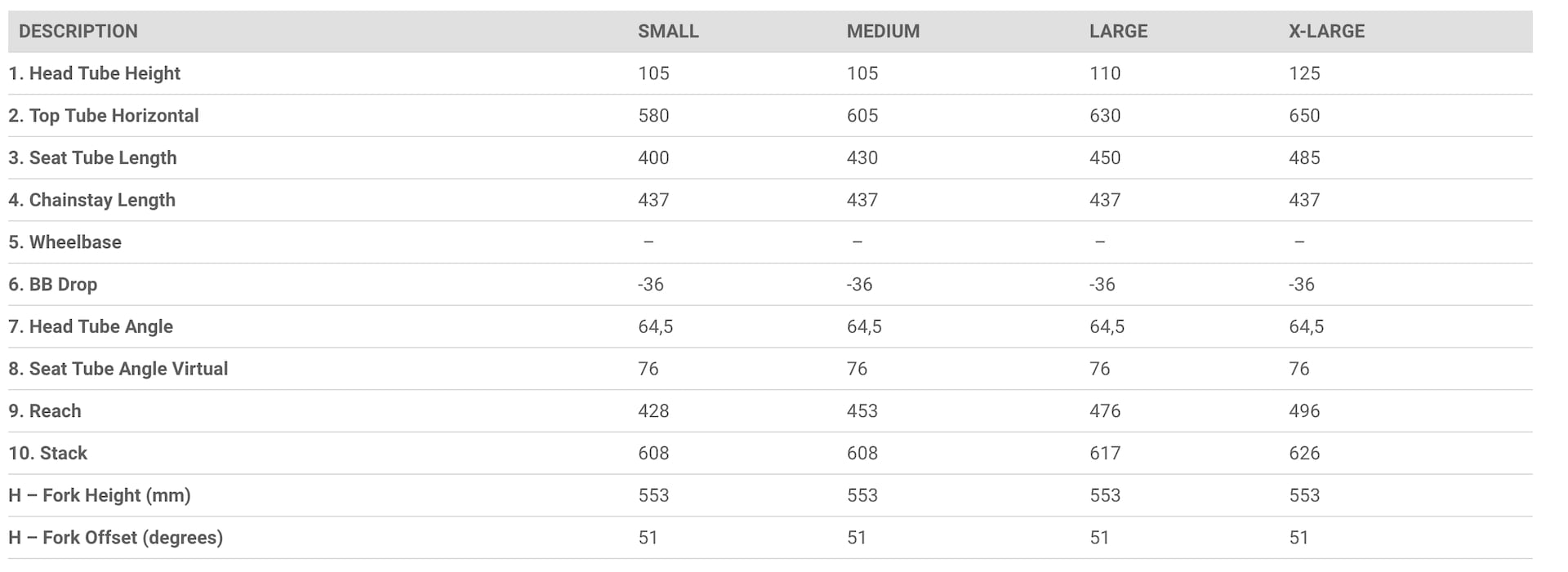 - Wheel size: 27.5in can also be built with 26in wheels.