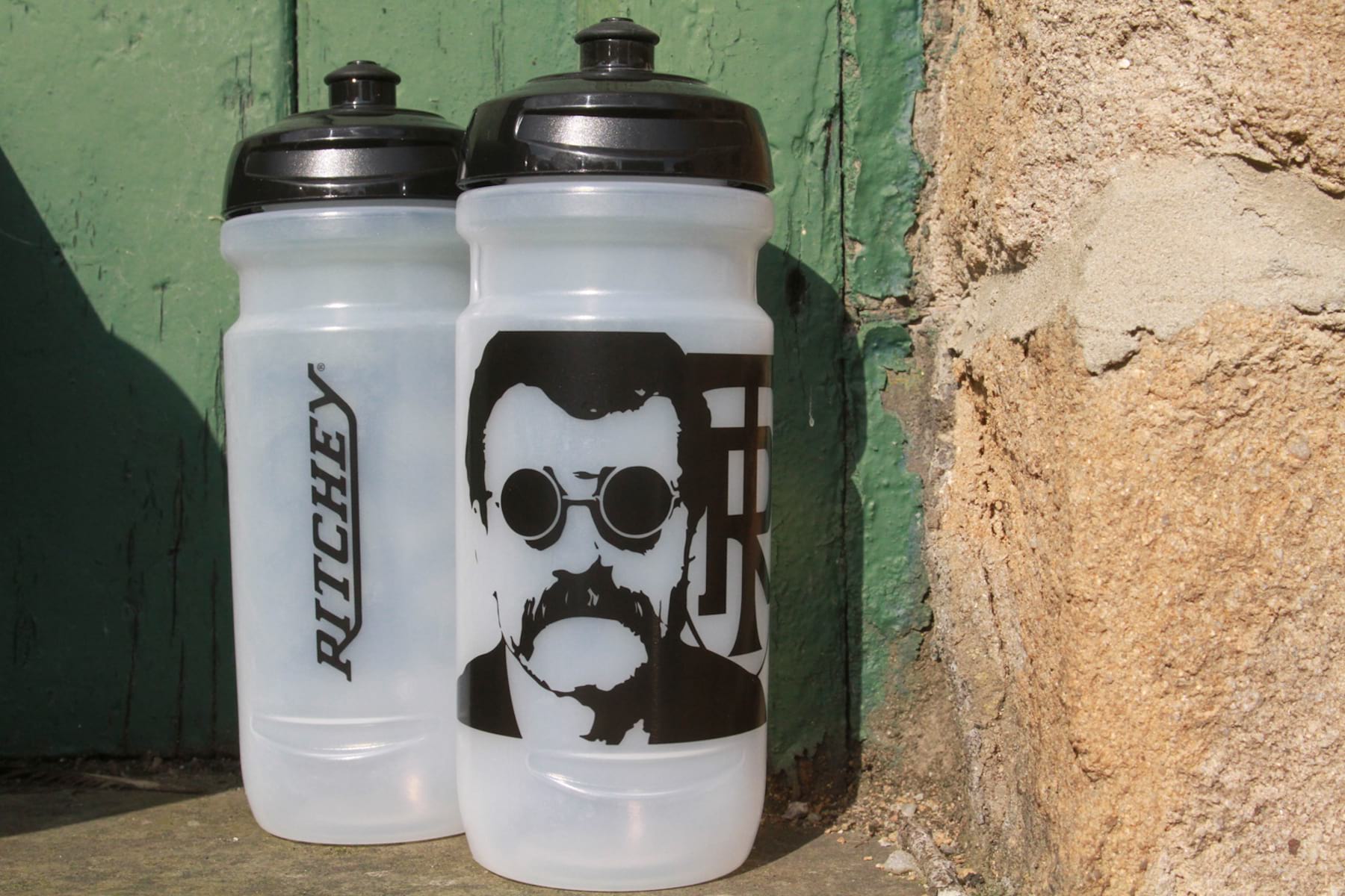 These are the smaller sized 600ml BPA free plastic bidons featuring the moustachioed and bespectacled fizog of iconic MTB legend Tom Ritchey. Put water in them or something nice that you like the taste of and stay hydrated whilst riding your bicycle.