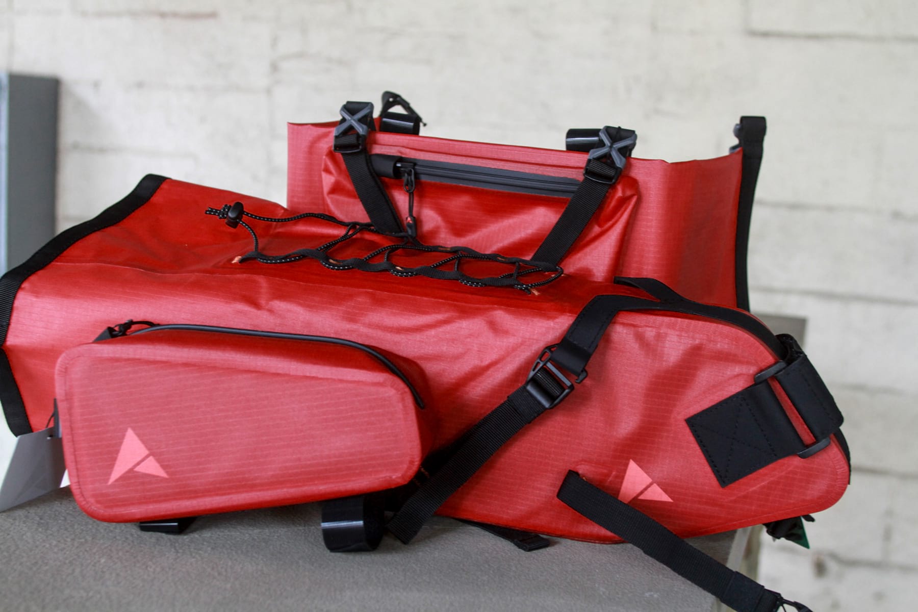 Designed as a bikepacking bag, it mounts to a seatpost snugly and holds anything you could possibly want to carry.