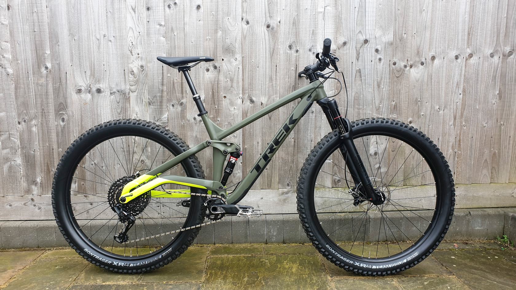 The Trek Full Stache is a full suspension mountain bike with a twist, the Full Stache rolls on 29″ wheels with mid-fat tyres. The Full Stache comes with 130mm of suspension travel front and rear, but I’m sure the tyres will give you some cushioning for those harder landings. With 29er rims, and huge tires to match, the Full Stache must be really long right?