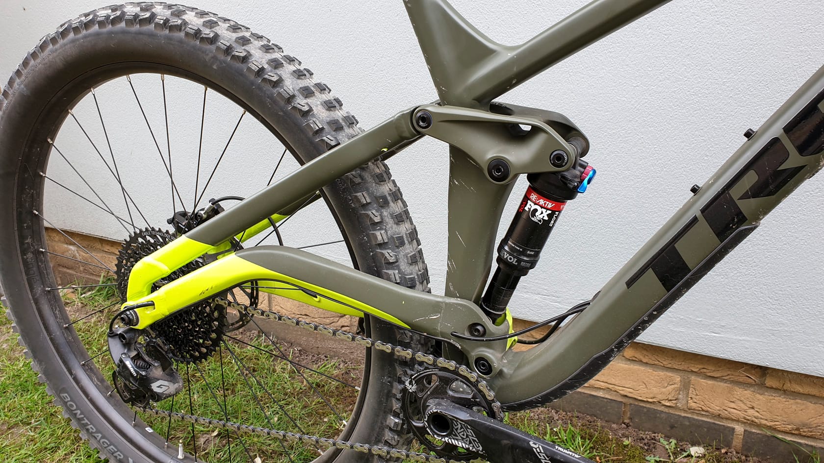 Nope, Trek has managed to squeeze as much as they could out of the Full Stache, the chainstays of this “behemoth” are only 430mm, very similar to what you would expect on the average trail bike. In fact, the Trek Fuel 9.7, a bike with the same travel and at a similar price, has 432-435mm chainstays, depending if you’re in the high or low suspension settings. Trek has managed to achieve such a feat with the Full Stache by elevating and shaping the chainstay, and making a new suspension layout for the rear.